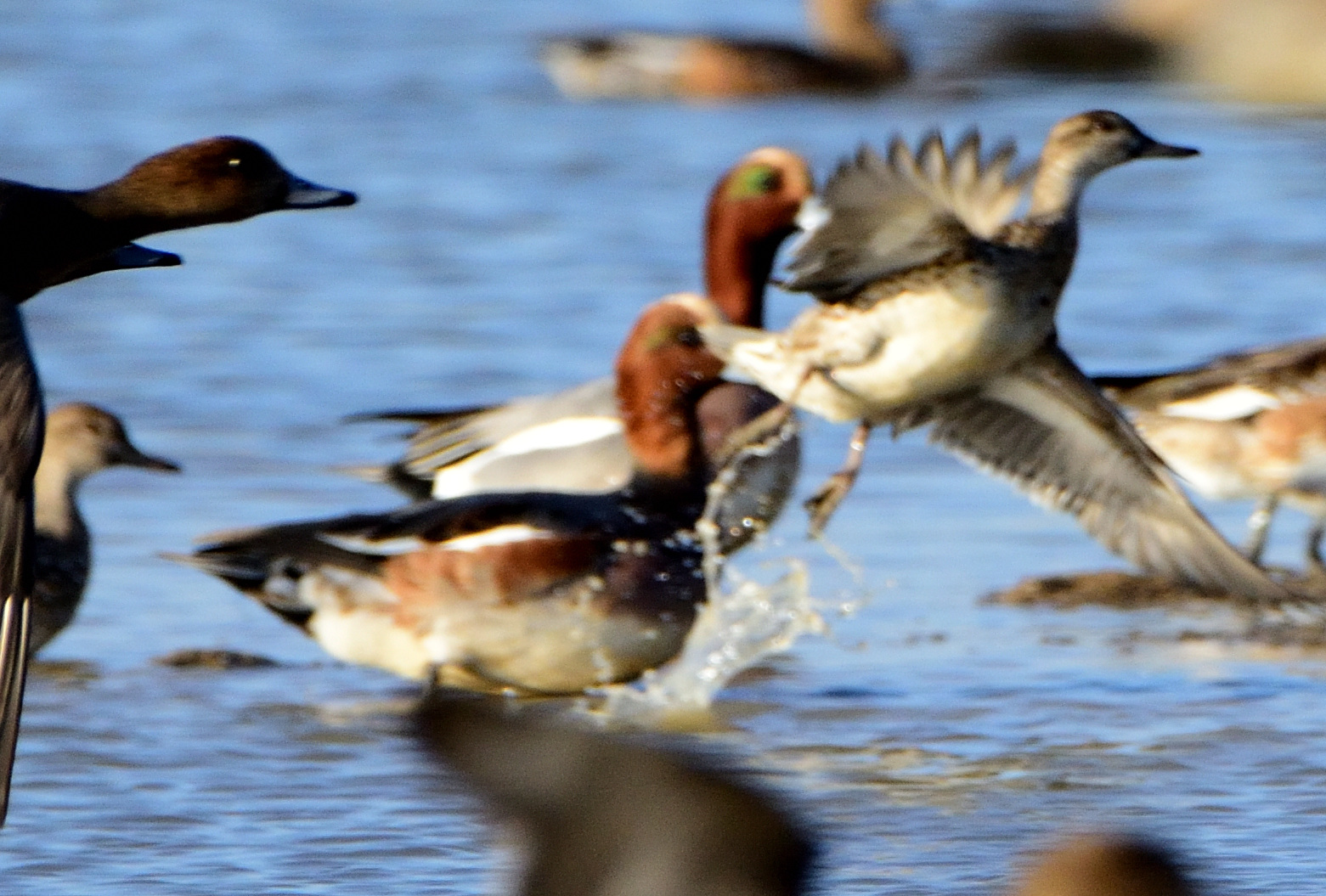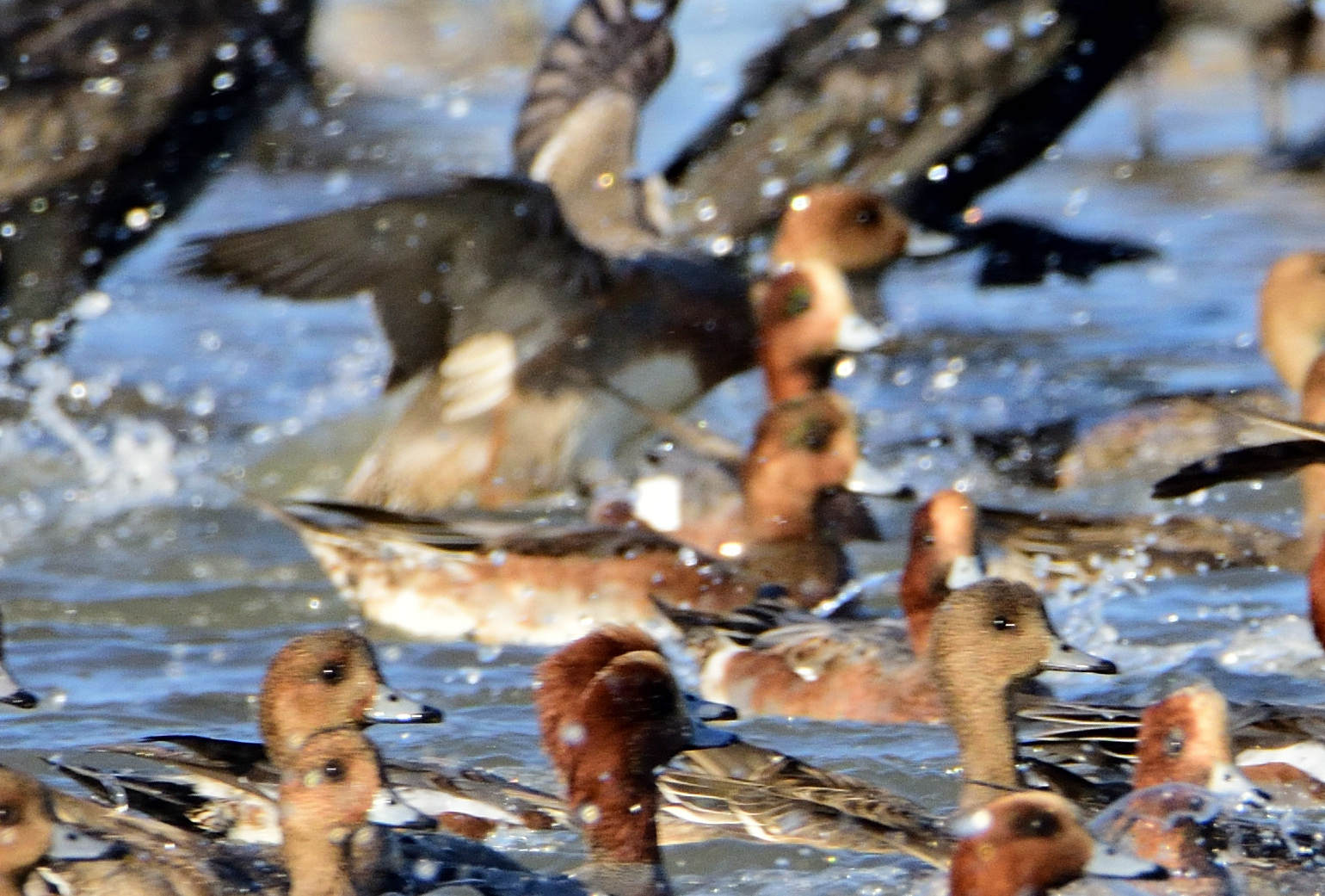 Some Eurasian Wigeon show green behind the eye. This is Eurasian Wigeon.
