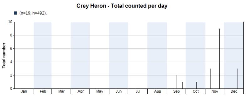 Another species that appeared in previously unknown high numbers in autumn. 2 on 3 August is an odd record. But November was the peak for this species, of which we counted a total of 263 individuals this year. The highest count was 72 on 7 November.