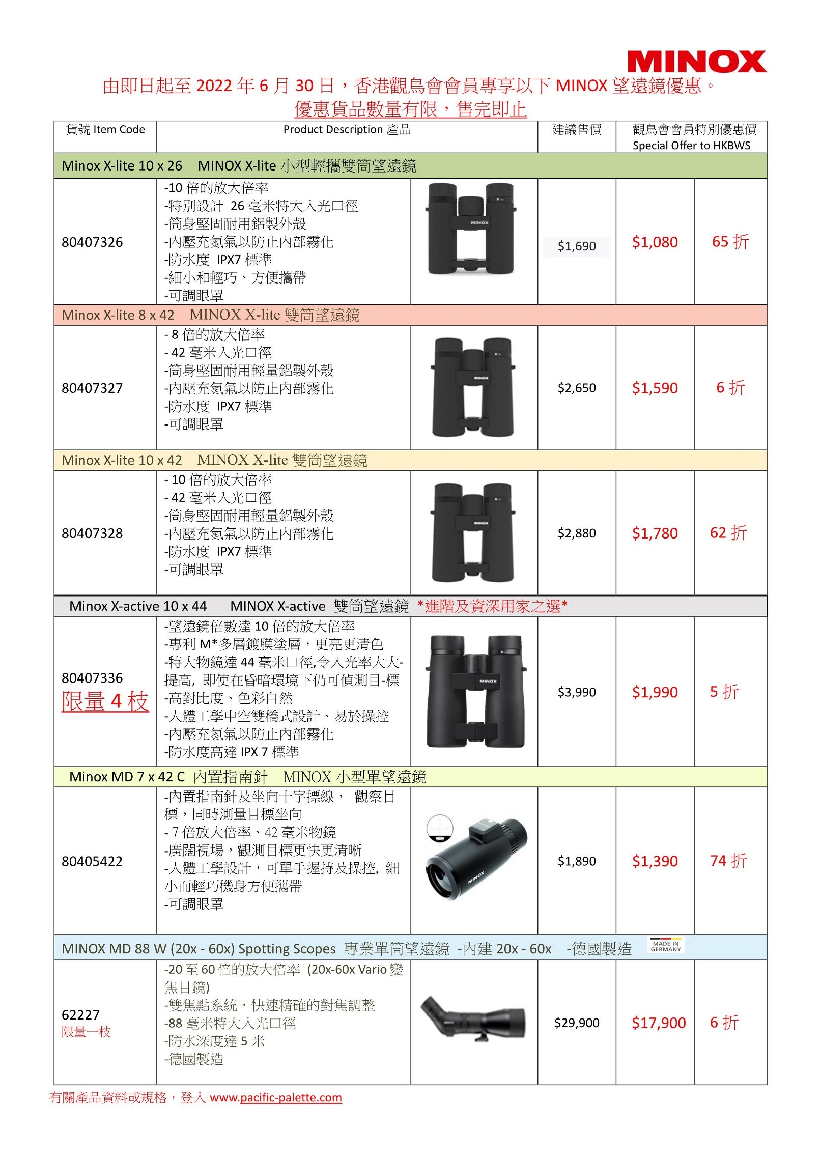MINOX 望遠鏡優惠 Special Offer of MINOX Binoculars 2022/05-06