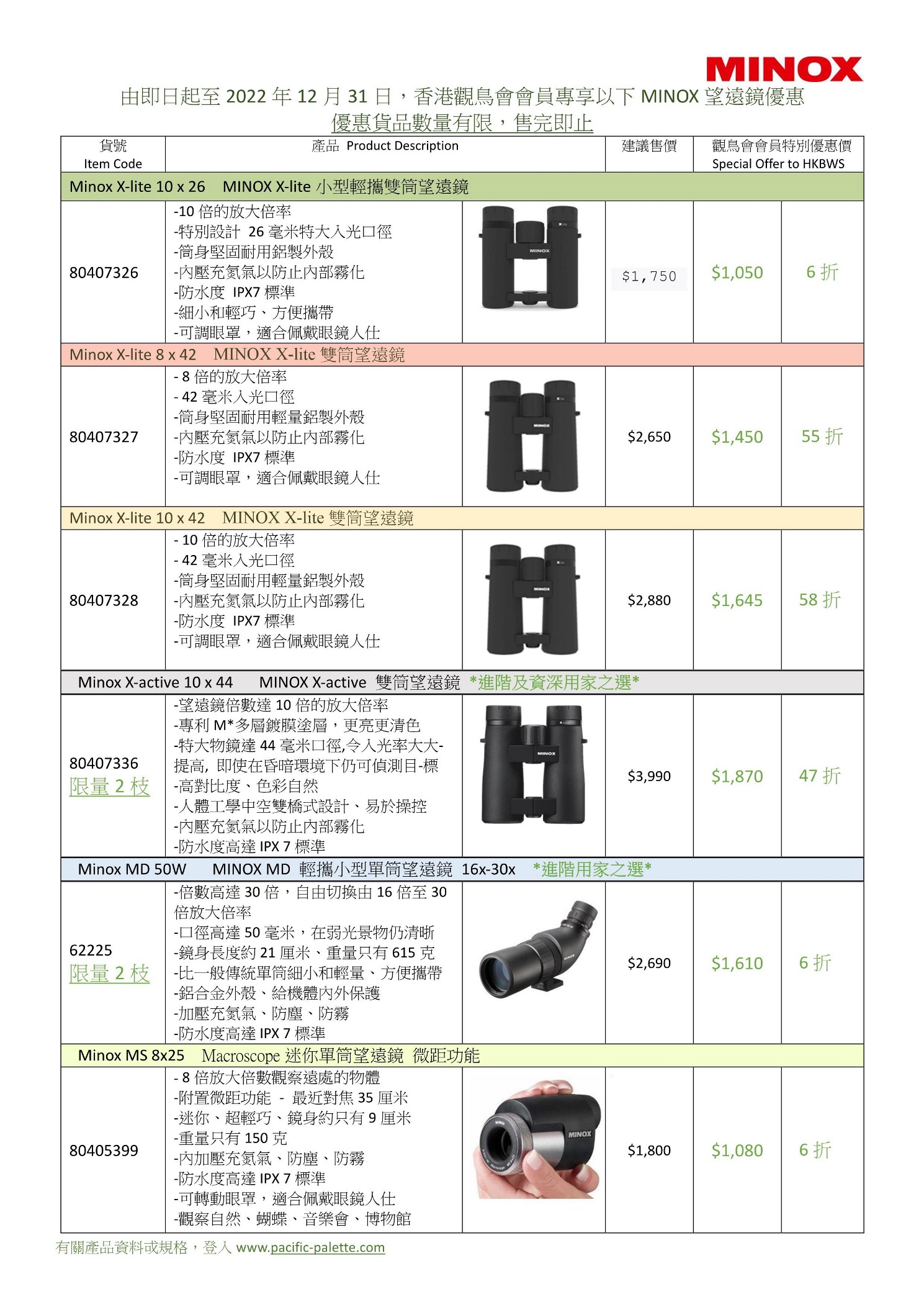 MINOX 望遠鏡優惠 Special Offer of MINOX Binoculars 2022/11-12