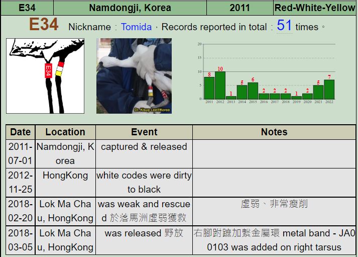 I saw E34 last year but the ring color condition was still good. Hope that someone will meet this individual soon to compare the latest ring colour and flag to verify. Author: walterma Time: 11/01/2023 20:17
