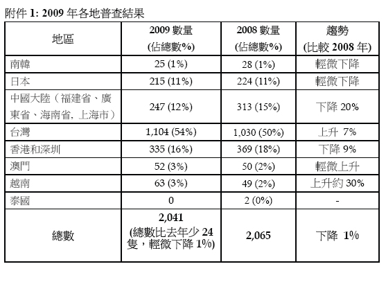 2009黑臉琵鷺 全球普查結果 Results of 2009 Intl BFS Census