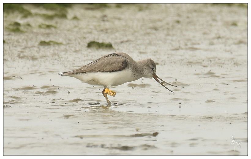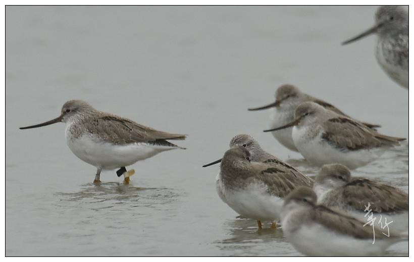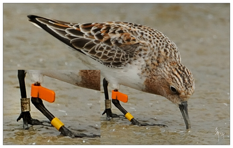 原帖由 lkatherine 於 2/05/2018 22:10 發表 華仔拍到的這隻紅腹濱鷸是Global Flyway Network在西北澳環誌的, 以4種不同顏色的腳環加上把黃色足旗放在不同位置,可組合出2千多個組合, 以標籤不同個體。例如這次拍到的這隻是黃旗在左腳兩個色環之間, 是5號位置, ...