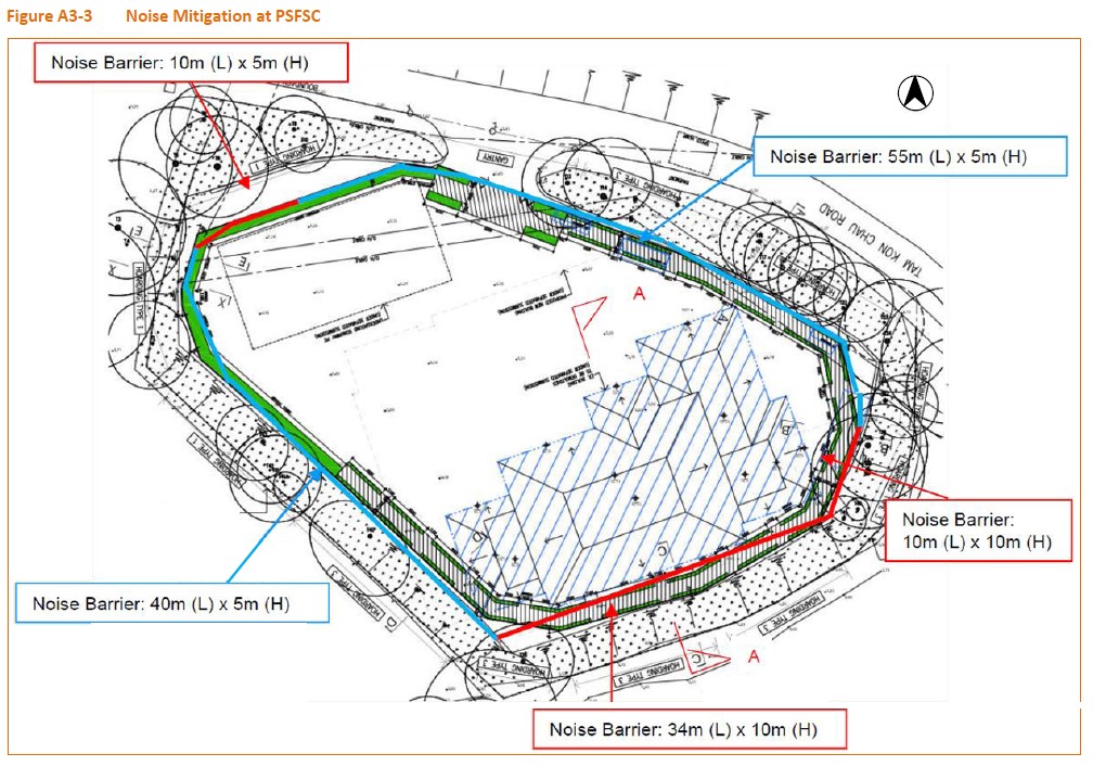Figure 1. Noise mitigation at PSFSC proposed in the EEA and used for simulation of noise contours under the mitigated scenario (extracted from Figure A3-3 of the PSFSC EEA).