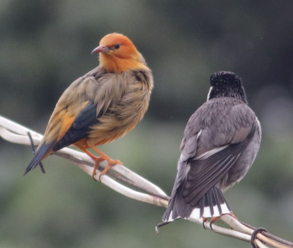 The one on the right is White-cheeked Starling, but no idea for the one on the left. The size seems the same as White-cheeked and came and left together. But can't imagine they are related. Pls advise.