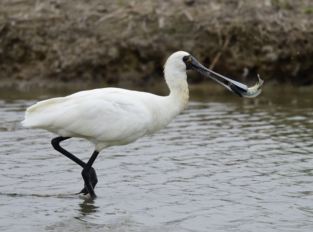 Main diets of Black-faced Spoonbills are fish, shrimp and aquatic invertebrates. (by John Yu)