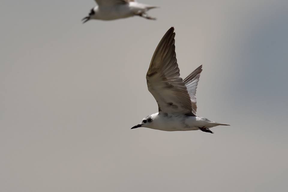 The second and third photos were taken from the same bird and following your advice, I have checked that the black marks on the body match very well the boundary between white and black colours of white-winged tern in breeding plumage.  Hence it should be white-winged tern moulting to non-breeding plumage as you advised.