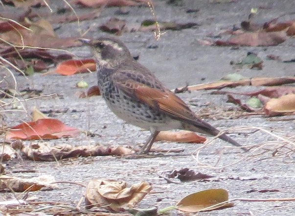 Looking at the book it seems a Siberian thrush, any ideas? Near the entrance of hide 1.