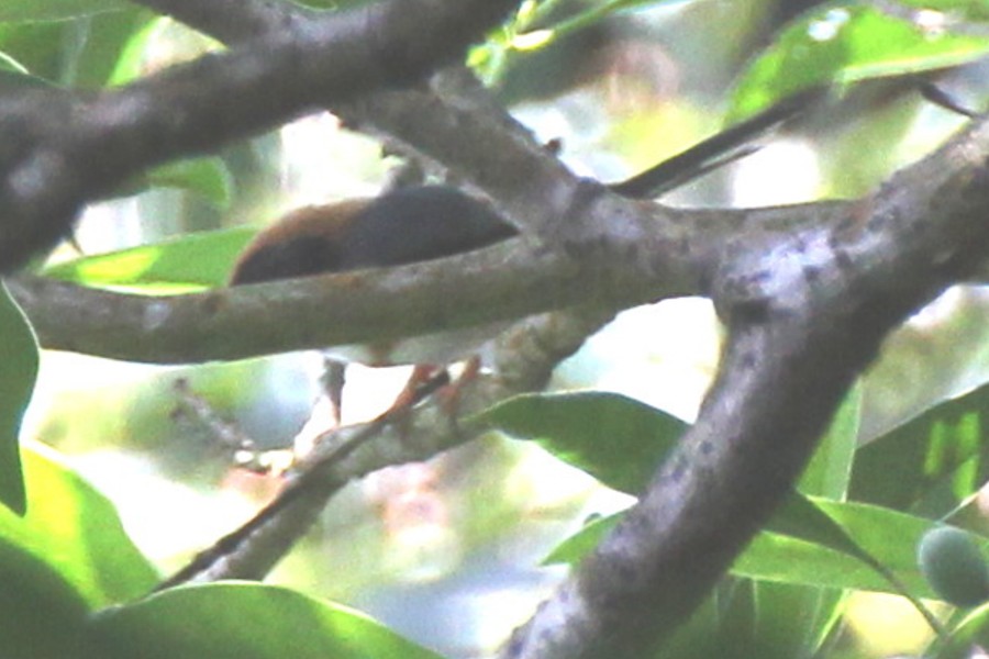 Bird was high up in the canopy and I couldn't get a clear shot of the head before it fly off. Was in a small group of three or four birds but difficult to say if they were all the same or mixed.