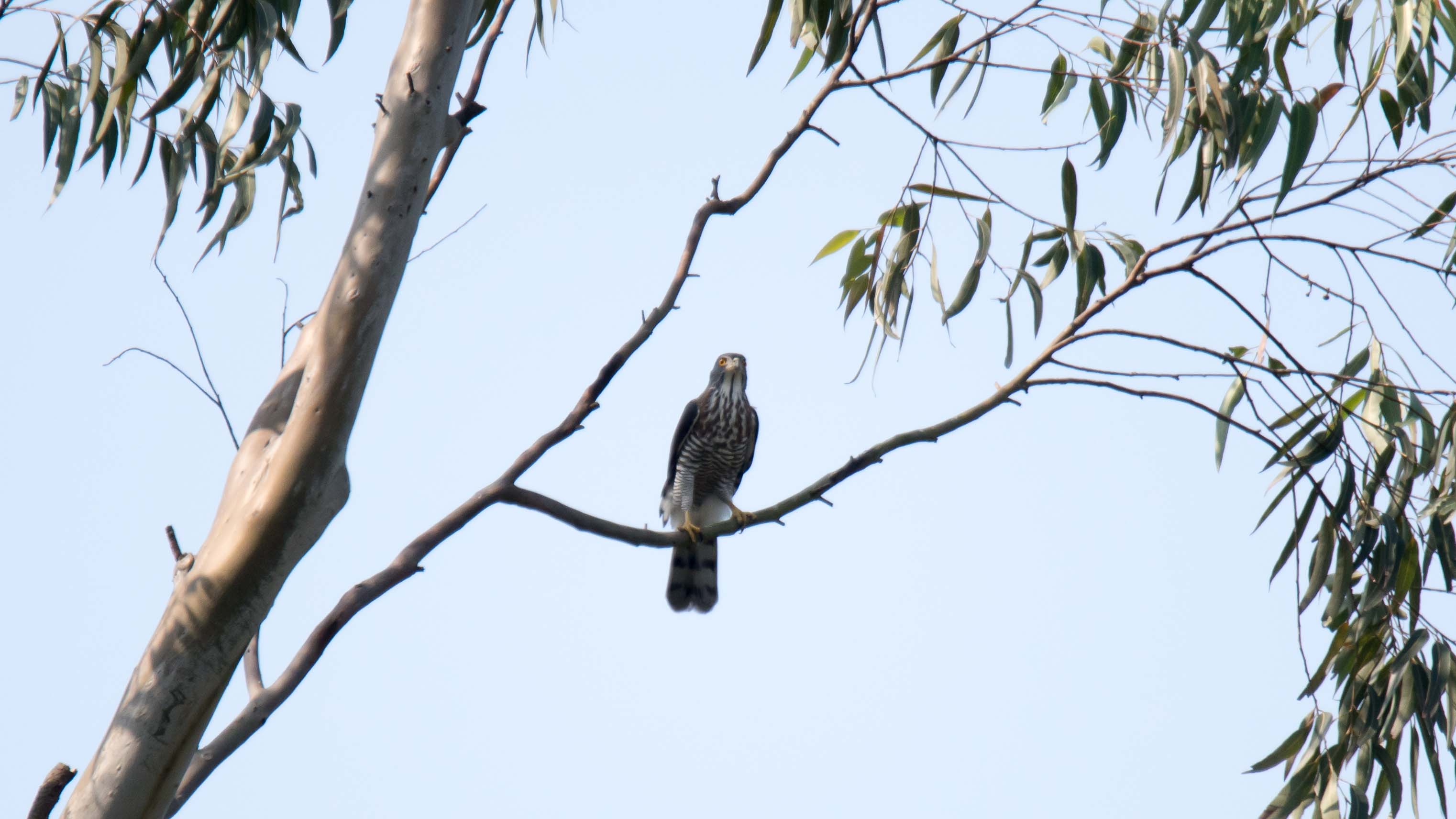 High up in the tree and then far away.