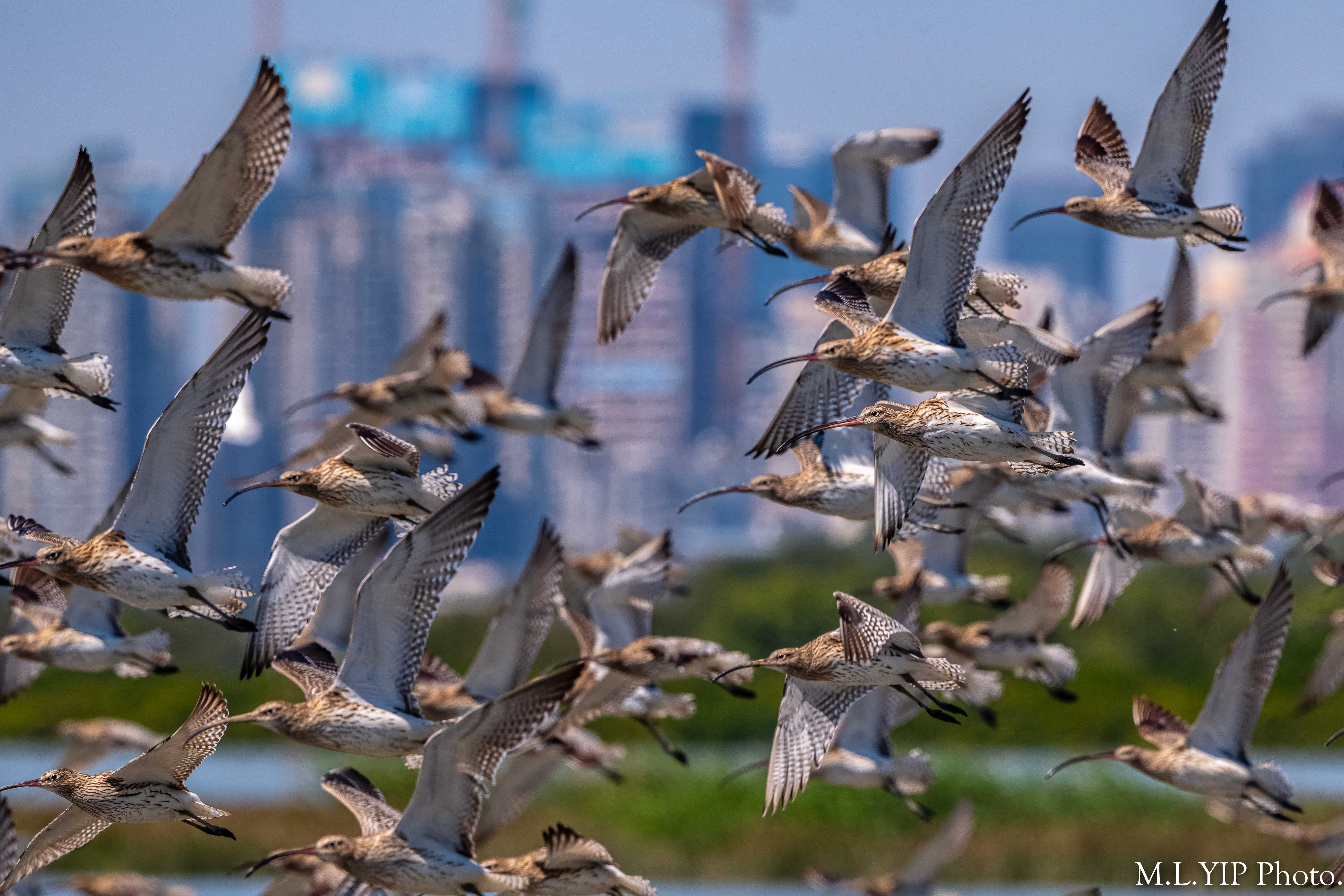 白腰杓鷸群飛.
