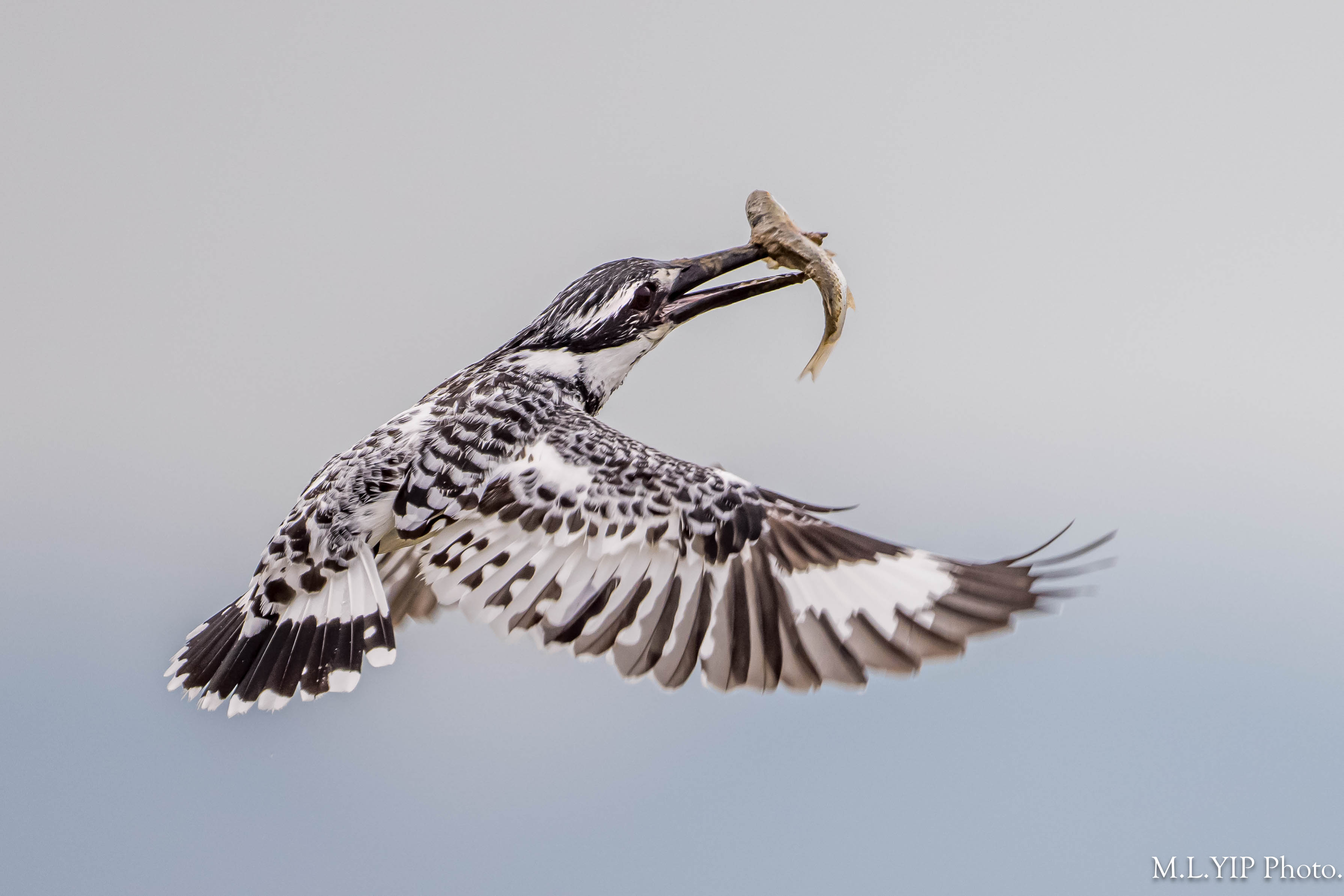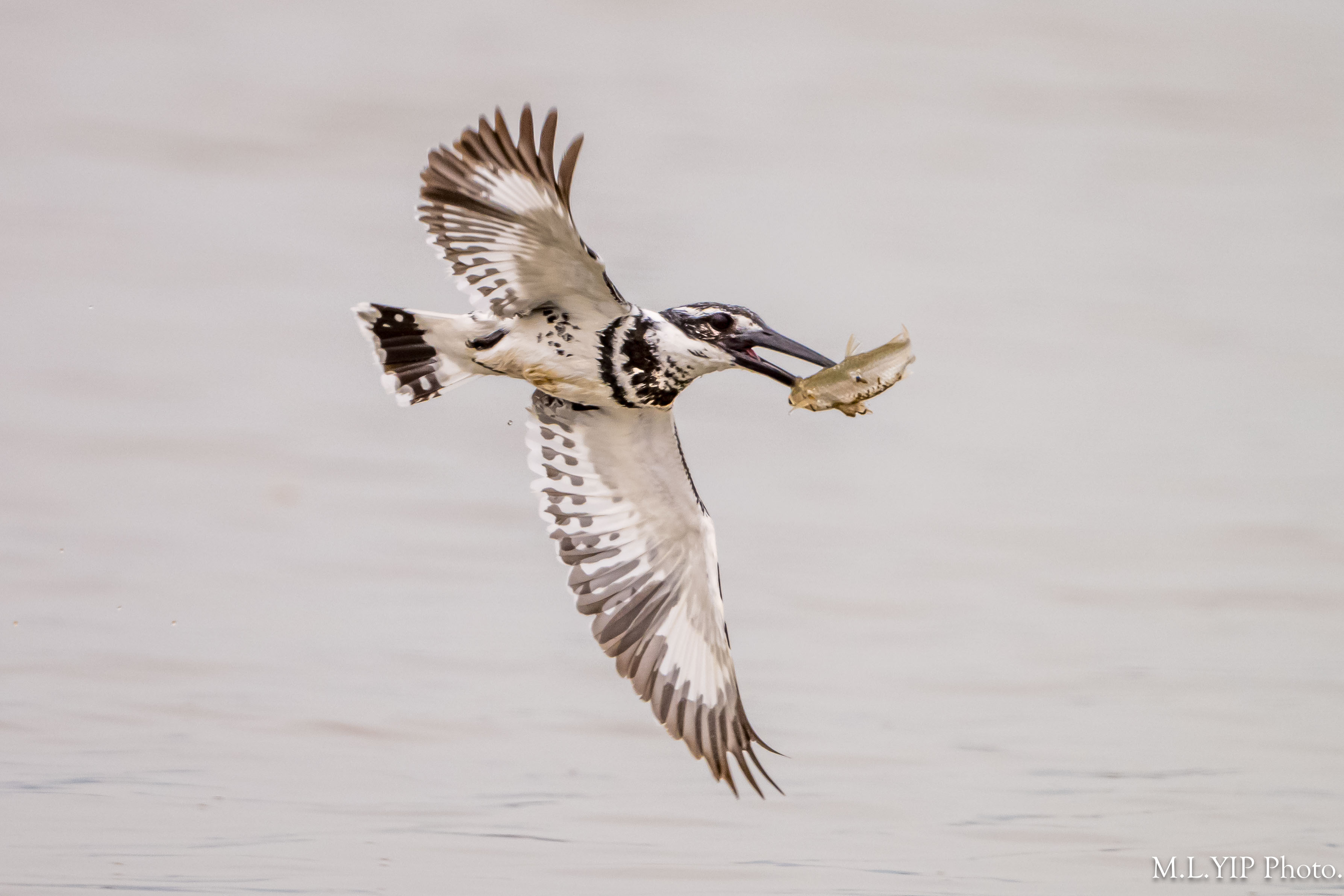 斑魚狗叼魚圖.