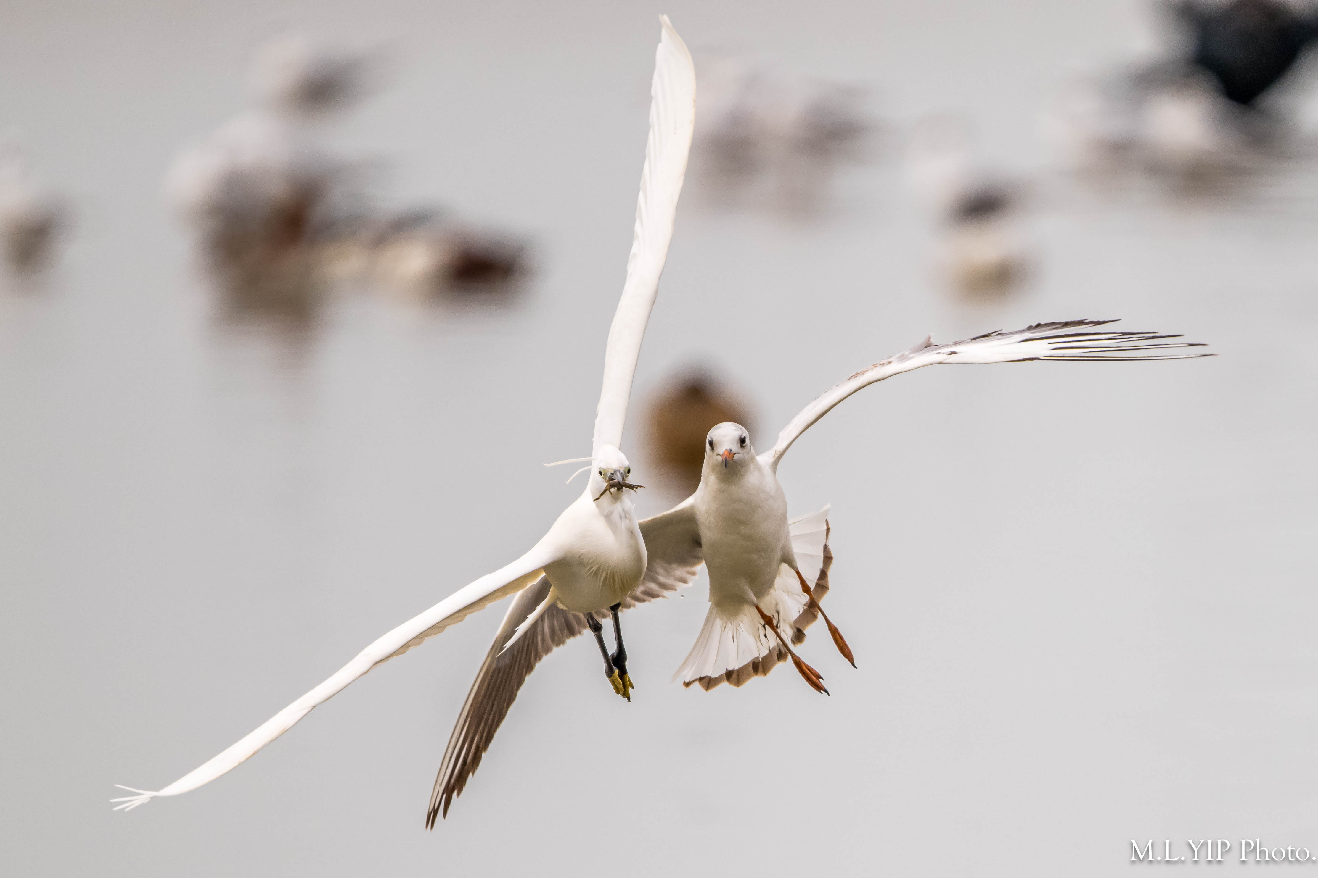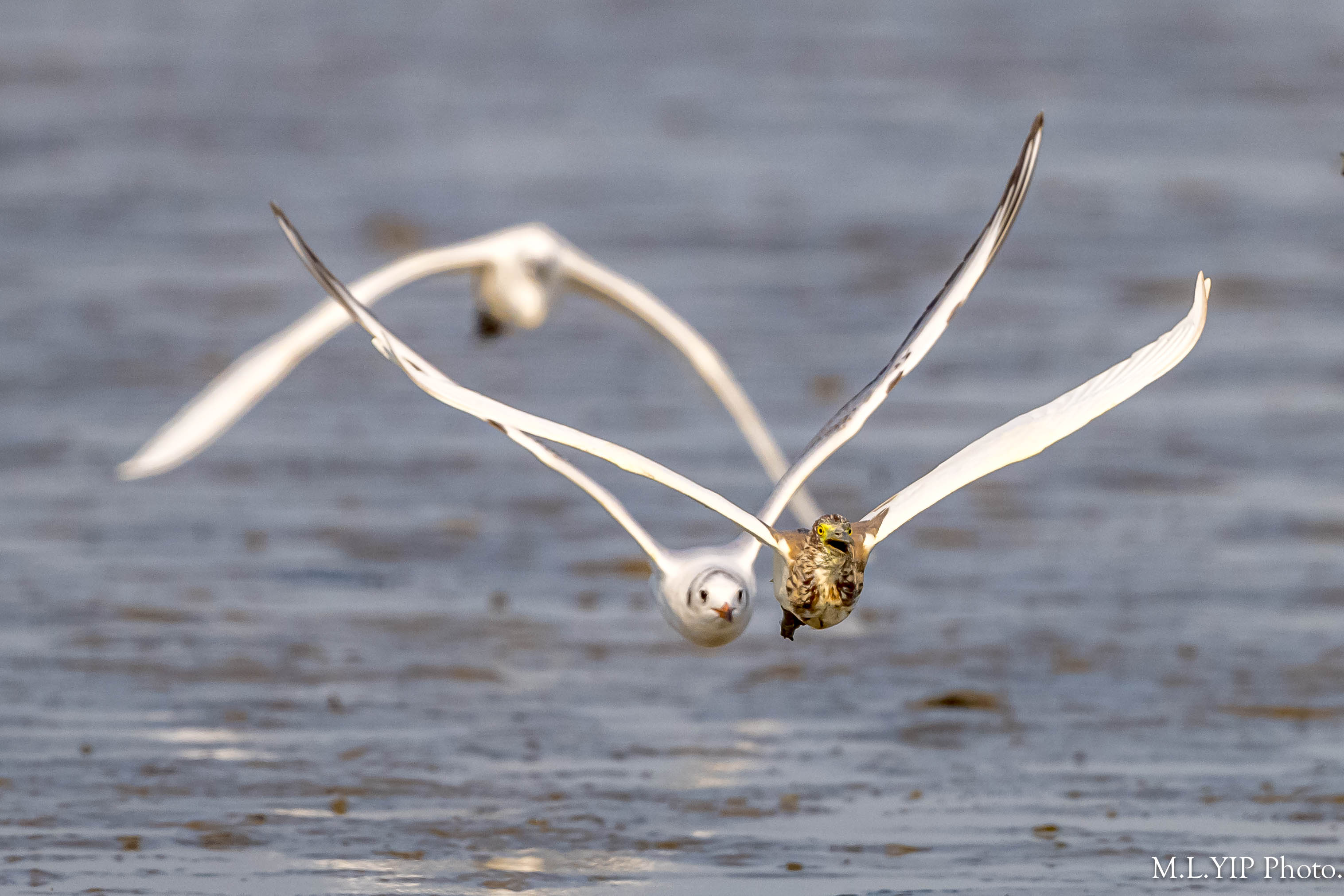 不過,紅嘴鷗可能不知就裡,仍拼命的窮追.