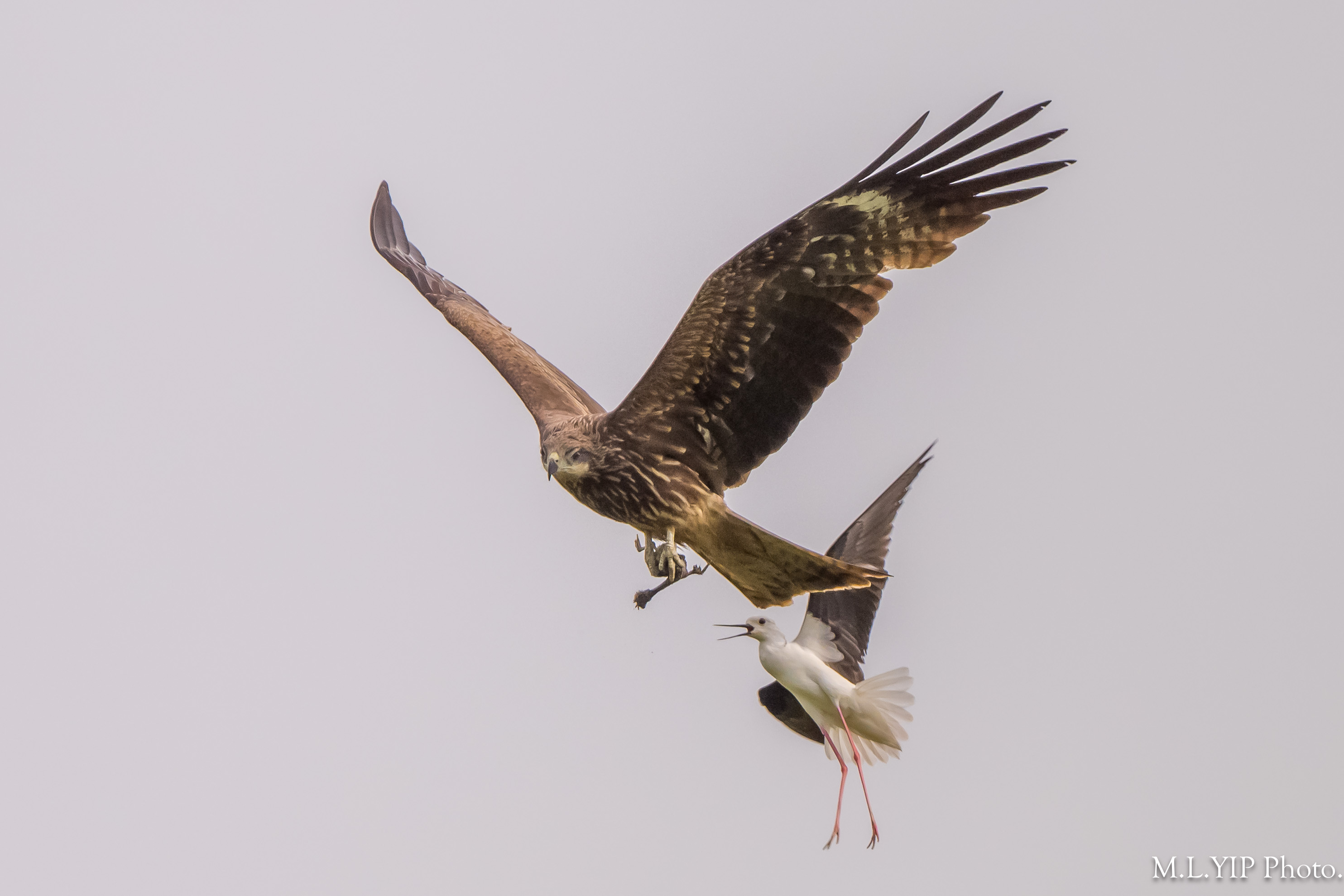 聽到黑翅長腳鷸群起大叫,才見到一隻麻鷹似捉了一隻黑翅長腳鷸的幼鳥.