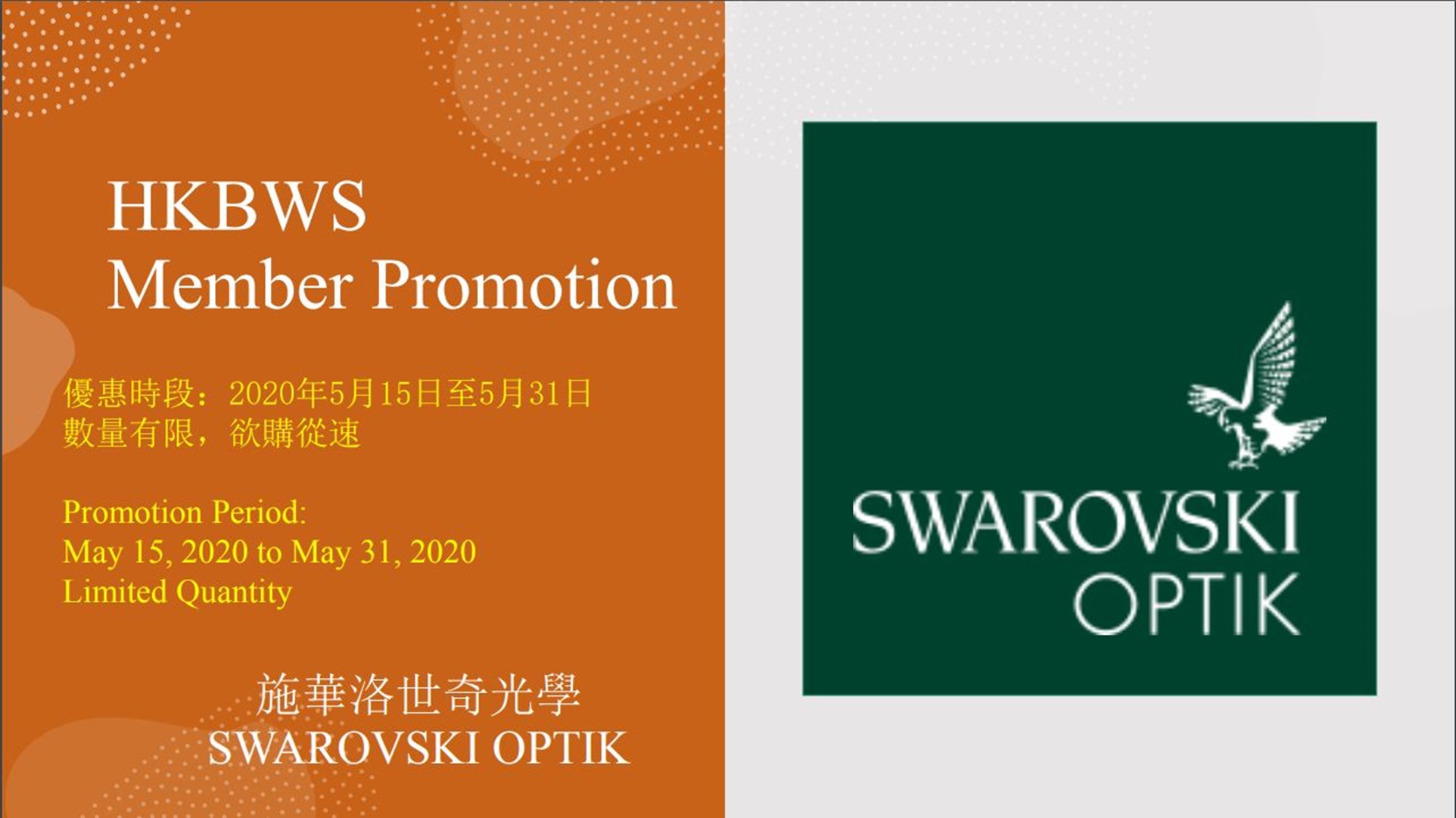 SWAROVSKI 望遠鏡會員優惠 Binoculars Special Offer