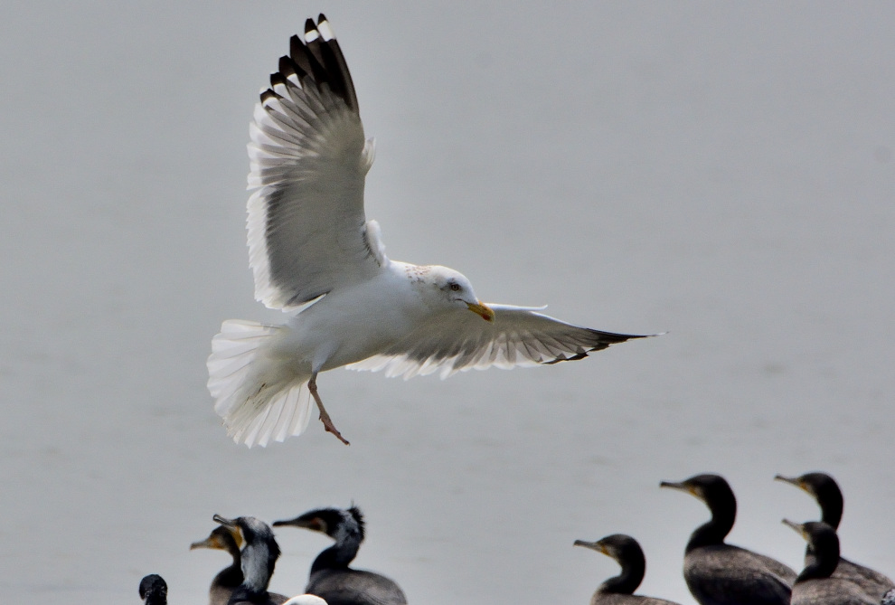 翻看泥灘海鷗降落圖片,發現很多鷗鳥都是單腳降落,接近地面才雙腳落地,但亦有始終保持單腳,莫非真是單腳的嗎?