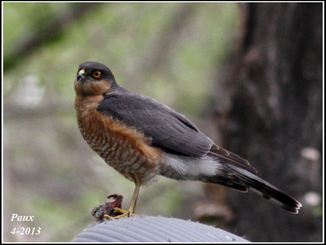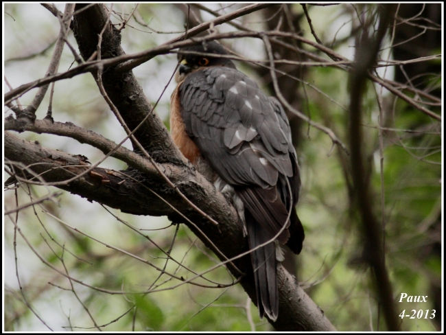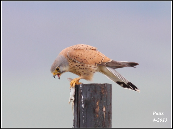 We met this bird in a park at Wulumuqi, When we spotted it from the footpath, it simply ignored us. Later we found that it locked a target on the slope under. After 10 mins., we heard a sharp continuous calling from the bird; it got a prey and carried it up to a tree branch. Finally, it even carried its prey from the forest to the top of a lamp post for a show