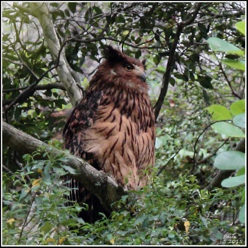 Tawny Fish Owl 黃腿漁鴞 - A pair of the owls was watching their baby below from the canopy of the tree; the baby owl dropped to the ground probably disturbed by the monkeys and was put back to a tree by the rangers.