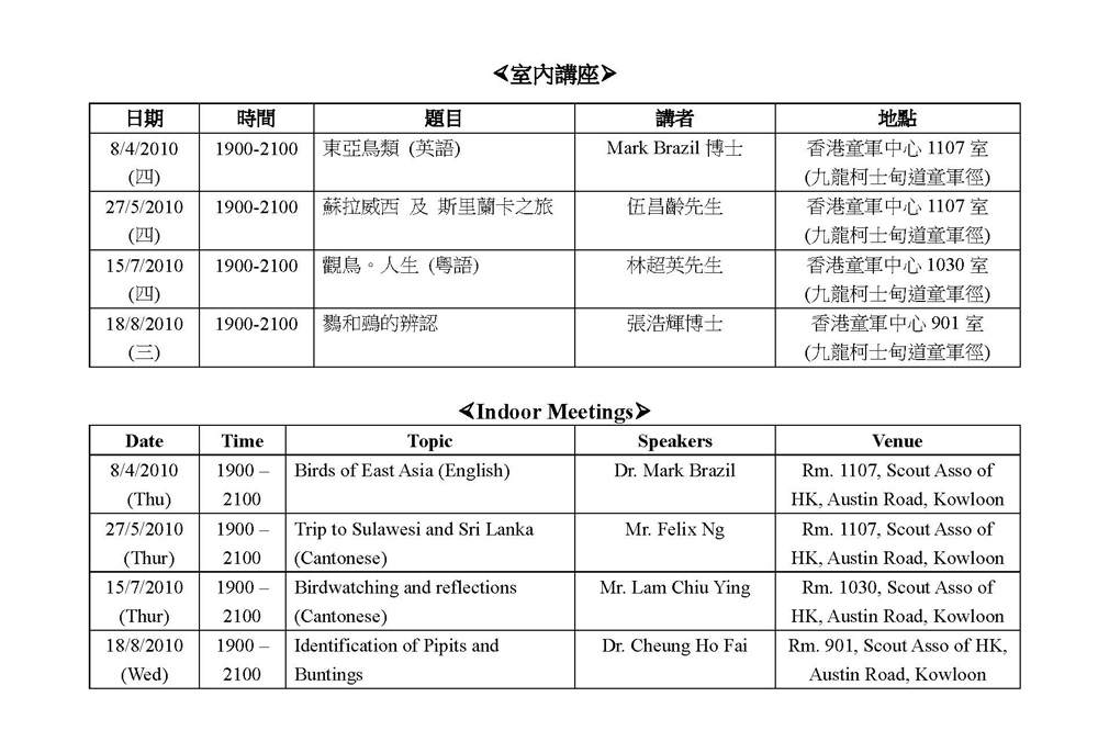 [Indoor] 室內講座 Indoor meeting - 2010年4月至8月 Apr to Aug 2010