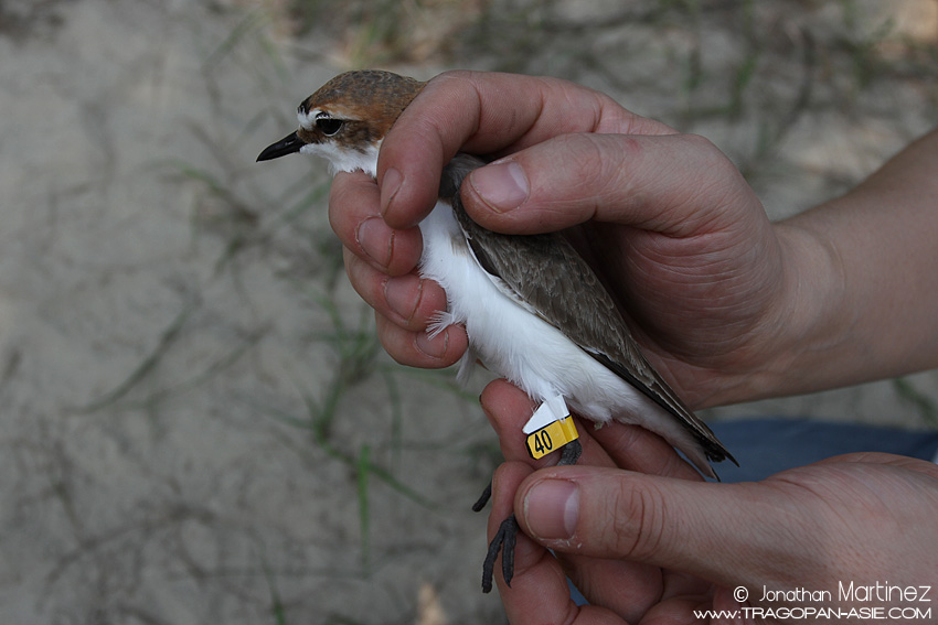 The first trapping session has occured last week, a total of 17 birds has been flagged, including 10 Swinhoe's / Kentish Plover, 4 Greater Sand Plover, 1 Common Sandpiper and 1 Dunlin. Please note that even the study is only on Kentish and Swinhoe's Plover, other species will also be flagged, so please be carrefull in the future when encountering a flagged bird and paid attention to the above description. I will reguraly update here the list of the species has been flagged in Guangdong.