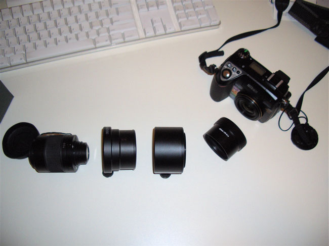 The DCA comes with 2 tubes and a number of adaptor rings. The M52 adaptor ring will screw into the Nikon tube and one of the DCA tubes.