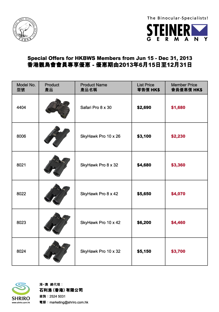 Steiner望遠鏡優惠 Special Offer of Steiner Binoculars till 2013-12-31