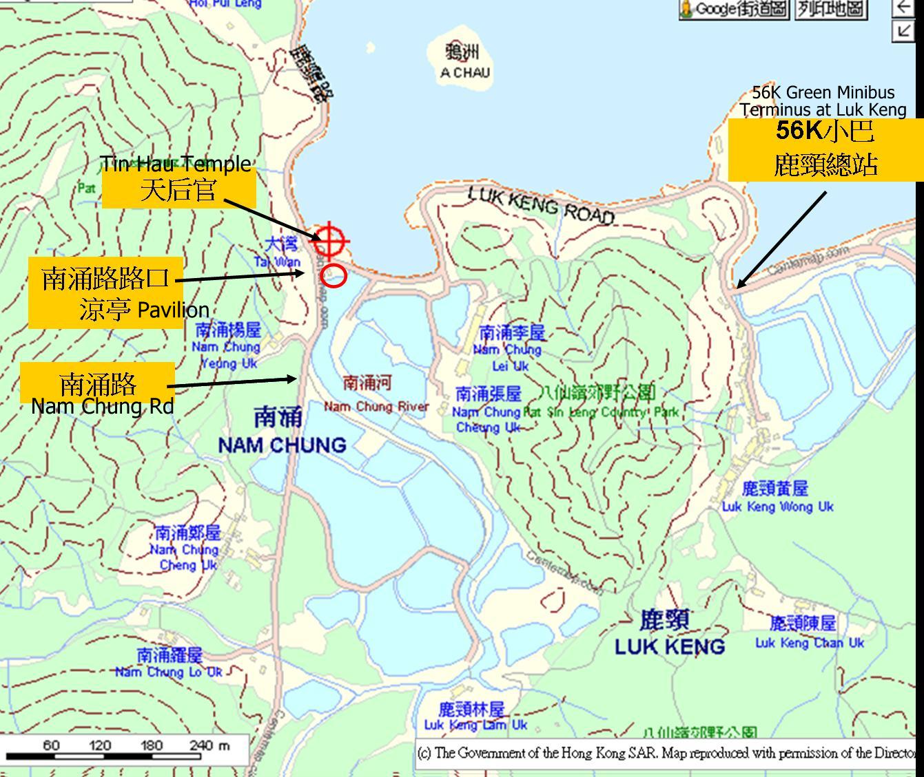 •Take KMB Bus no. 76K departs from Choi Yuen Road opposite Sheung Shui MTR station. Alight at Kam Tsin Village bus-stop. Then walk on foot following the route shown in the map below.