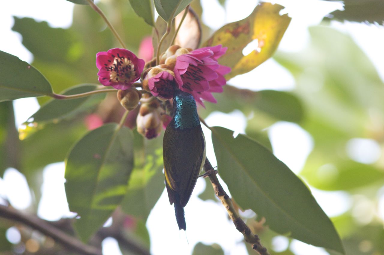 Another shot taken today. Took a few, but only this one seemed OK. This male is enjoying the nectar of Rhodoleia championi flower (紅花荷)