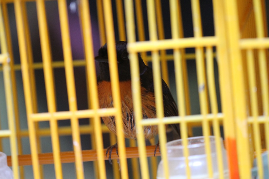 (possible Brown-breasted bulbul but in a packed cage of frightened mixed sp)