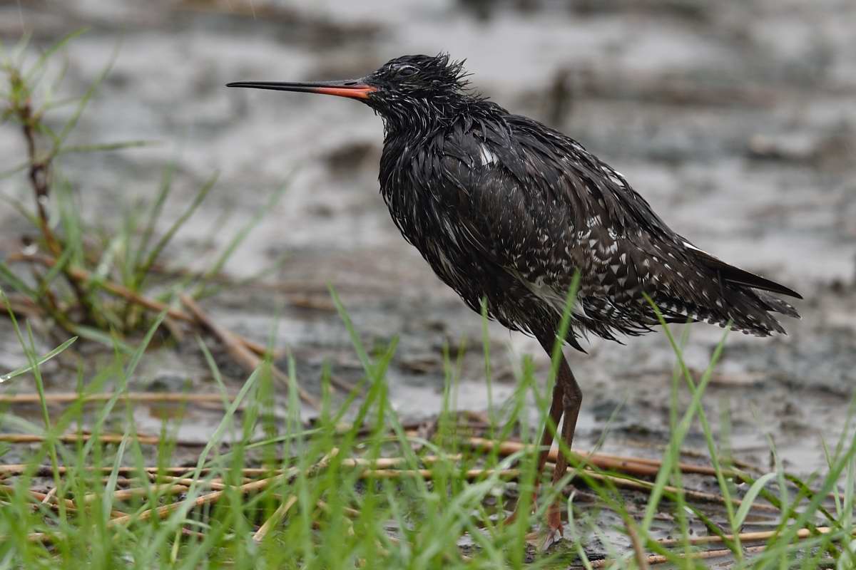 Ah, Spotted Redshank's bill is not afraid of rain...