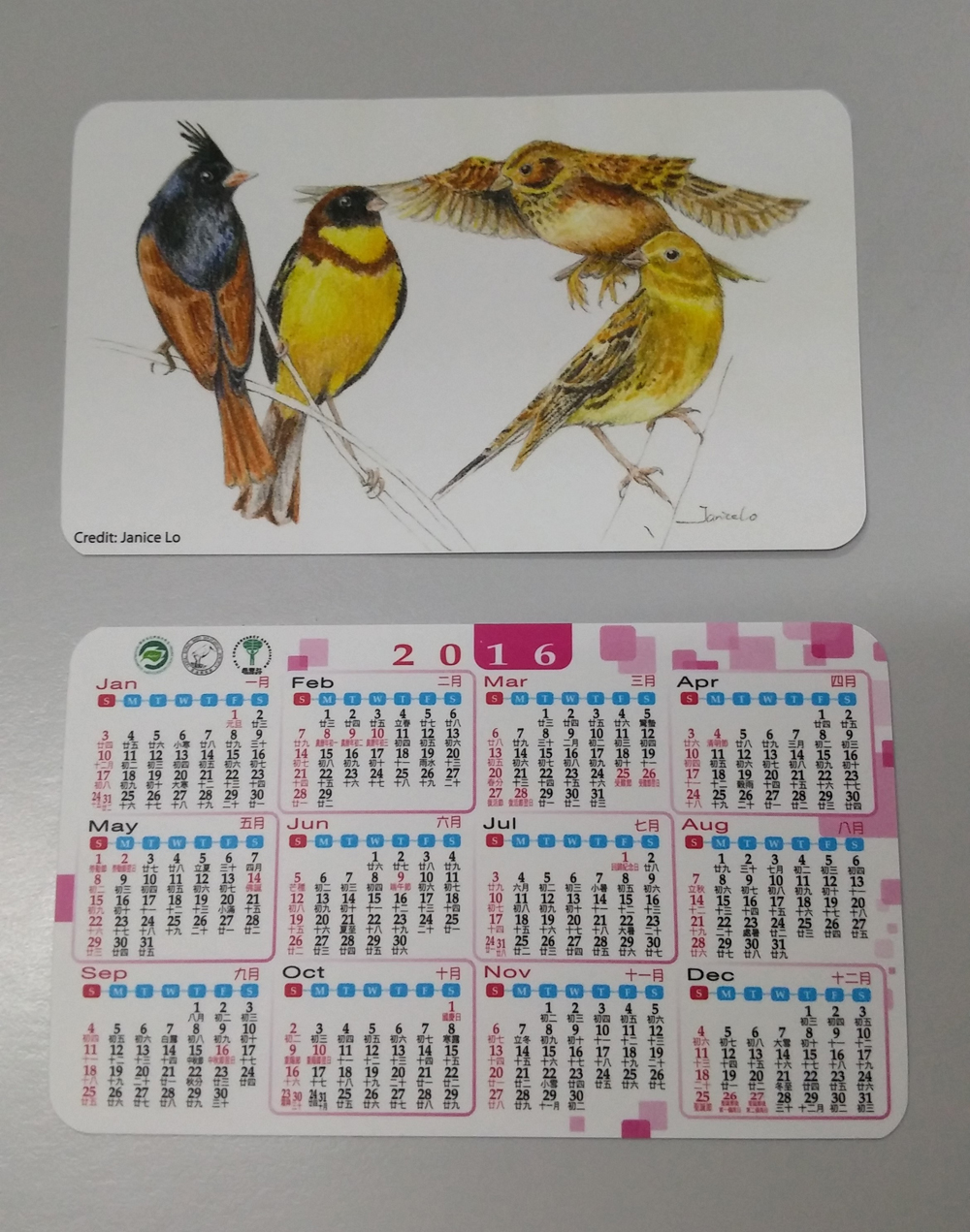2016 年年曆咭已經印好,並會隨下一期會員通訊郵寄給各會員,會員亦可到香港觀鳥會辦事處自由領取。