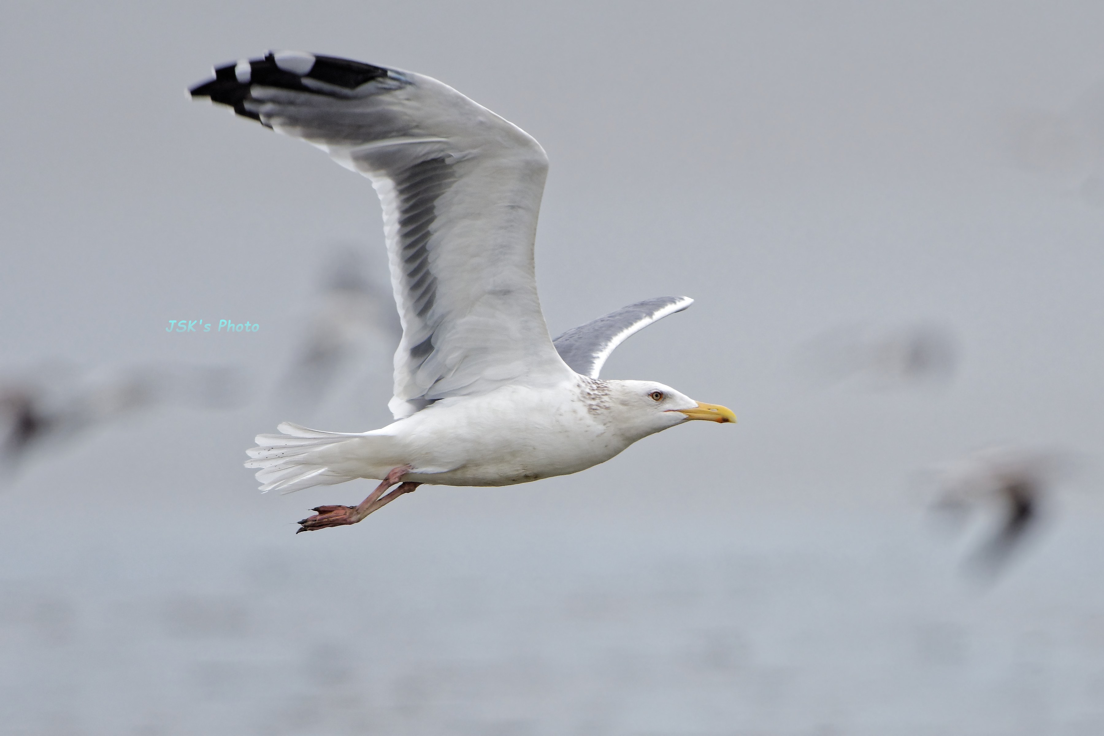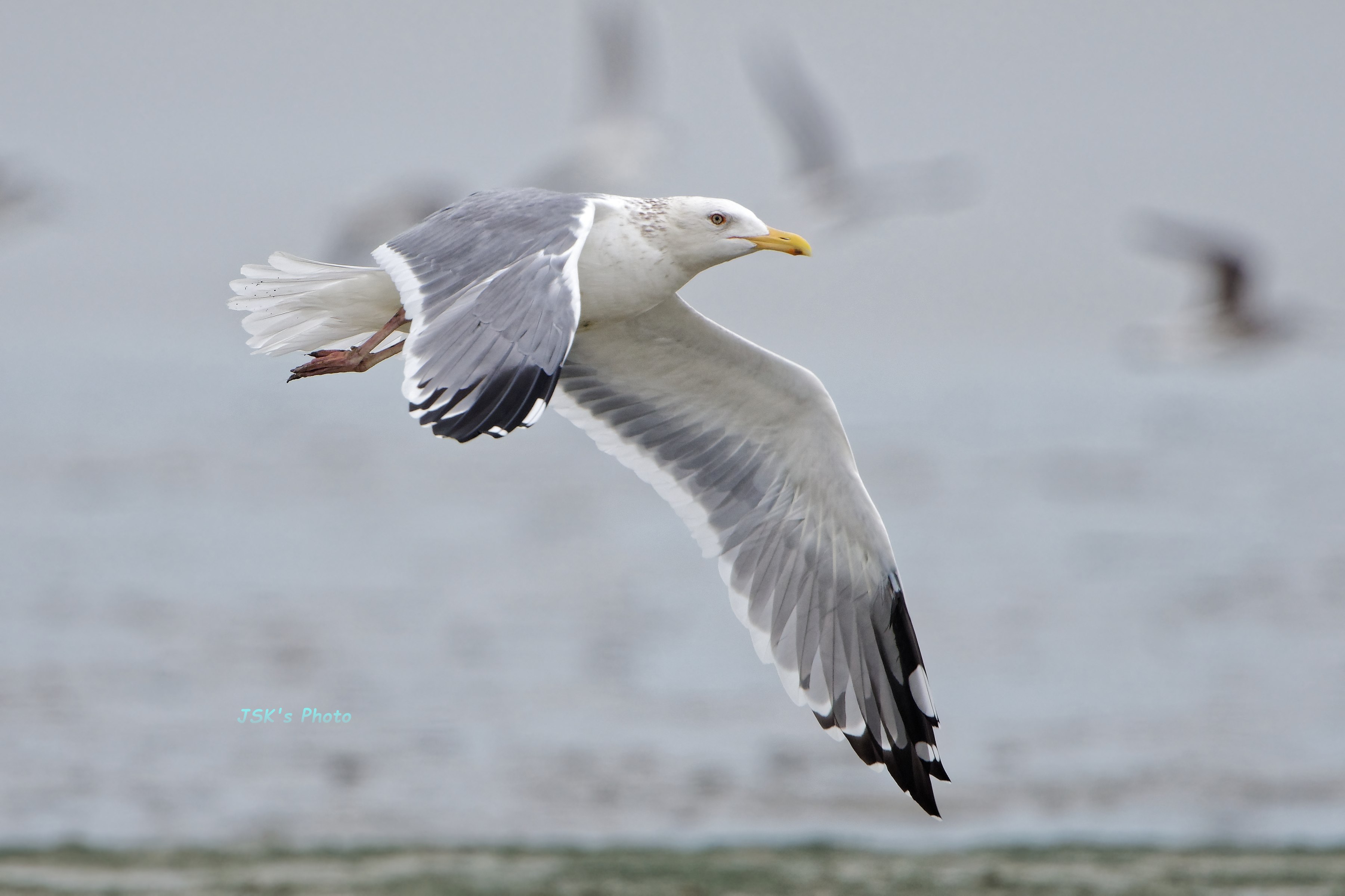 Incomplete primary moult in March, greyish tone to nape streaks and yellowish tone to legs indicate this is not Vega Gull.