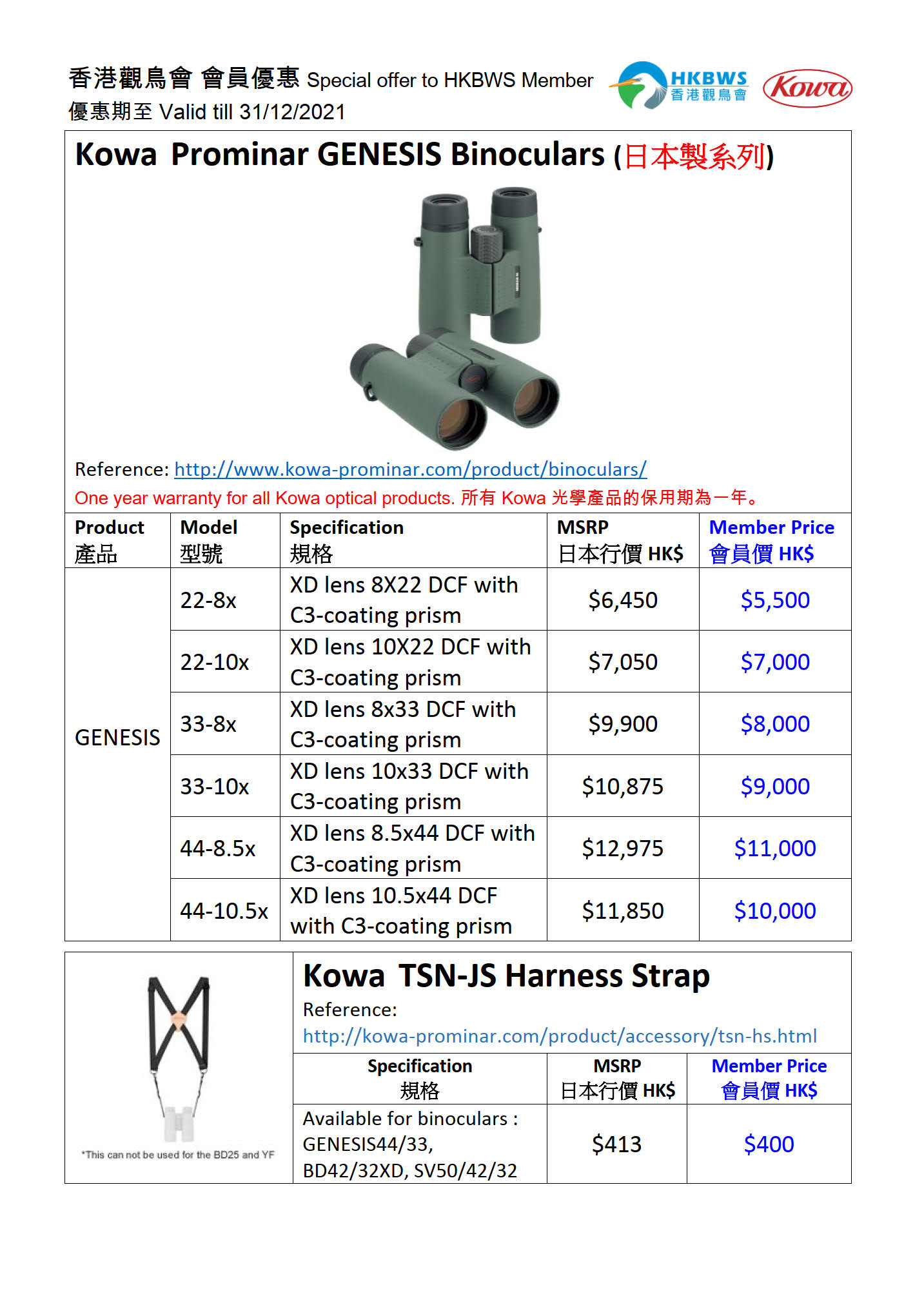 Special Offer of KOWA Binoculars ~ Aug to Dec 2021