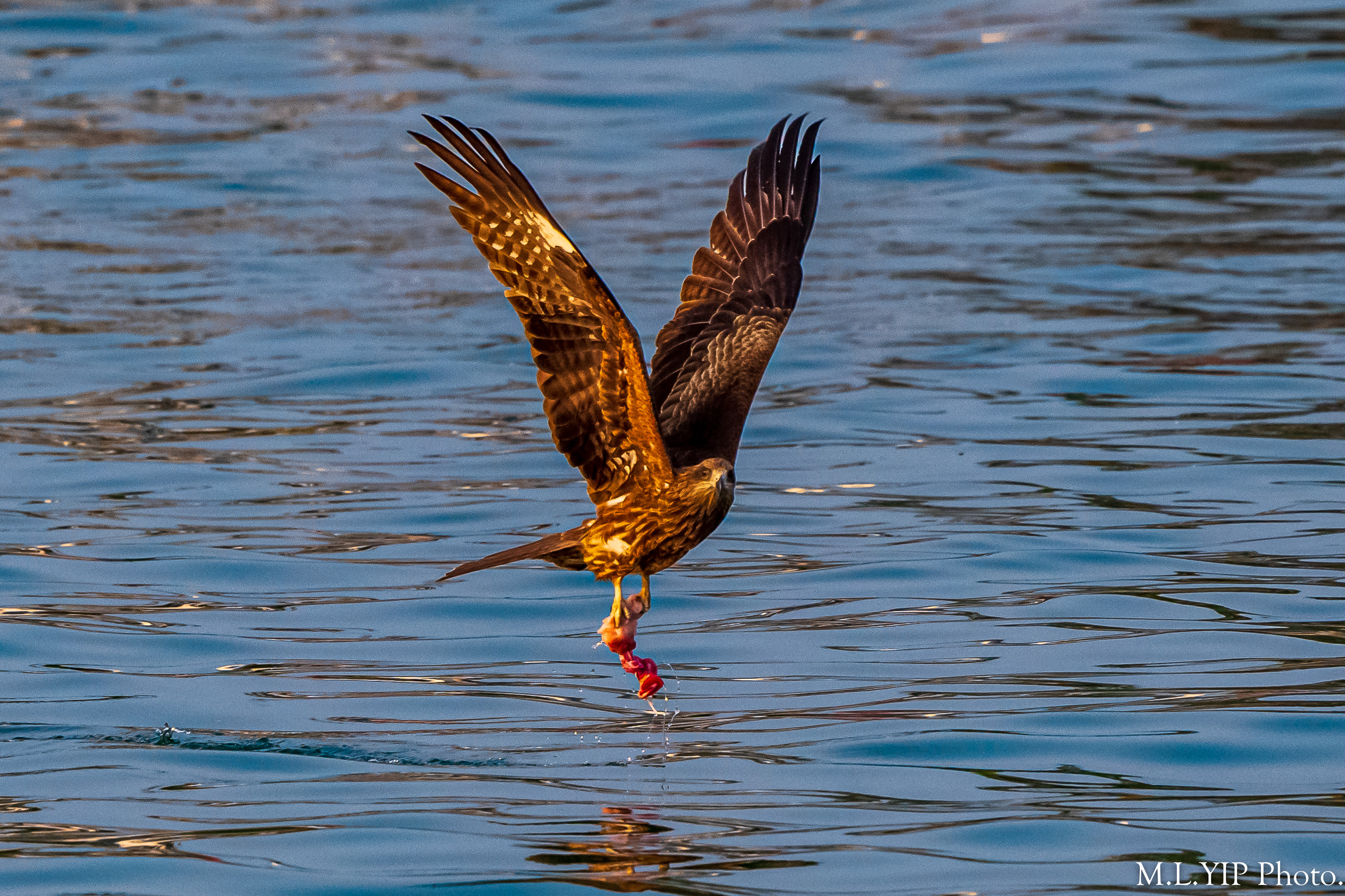 麻鷹雖有威武的外貎,但有時也祇能撿拾魚販棄掉的鮮魚內臟充饑,實在真是搵食艱難。