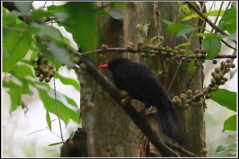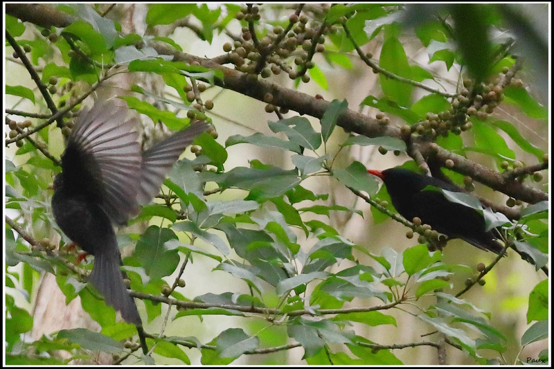 A large flock of noisy, playful Black Bulbuls stayed in the forest for a feast.