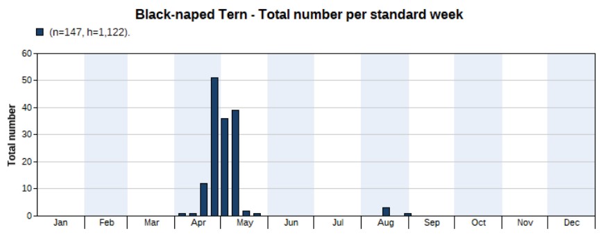 A handful records, mostly between 1 and 7 May. One single bird in autumn, on 21 November.