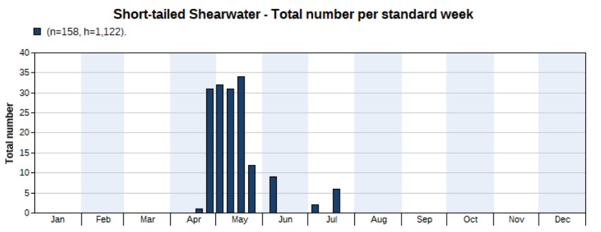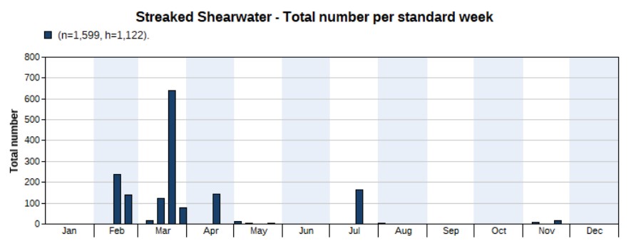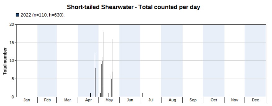 * The total number on the above table of Trektellen includes 62 dolphins. The counts also include some potential double counts of Streaked Shearwater, and Flesh-footed Shearwater (same individual seen on two subsequent days and counted as two on Trektellen).