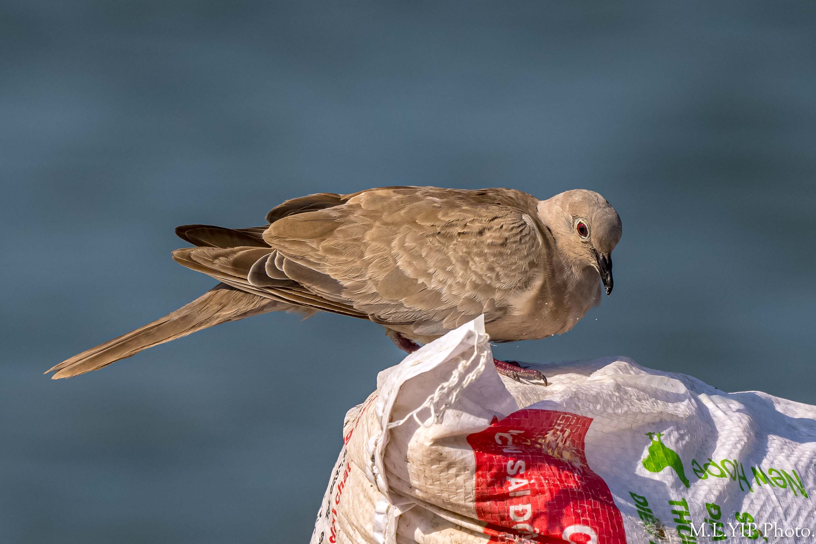 原來灰斑鳩對魚糧也感興趣,怪不得在大生圍,常見到它的縱影.