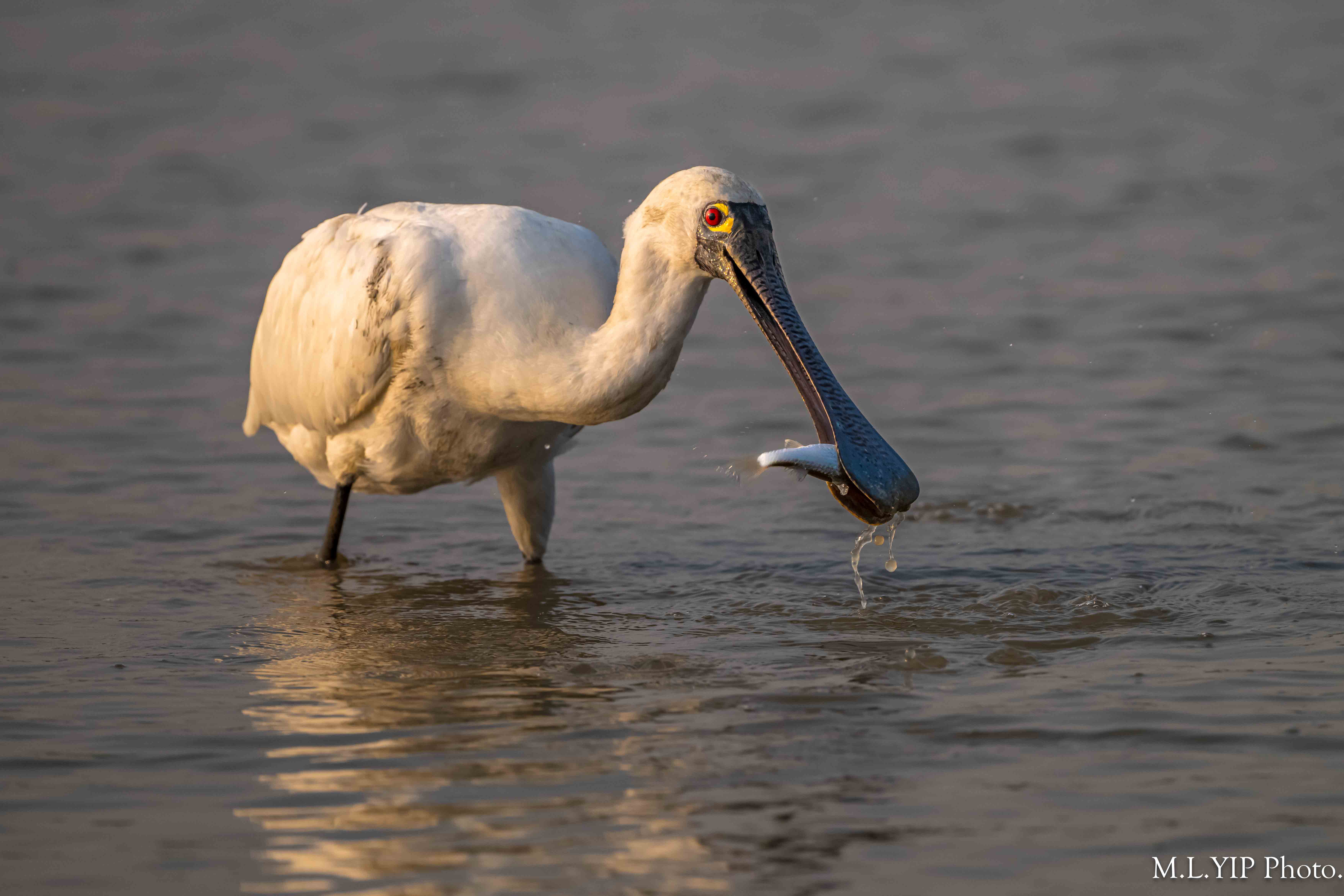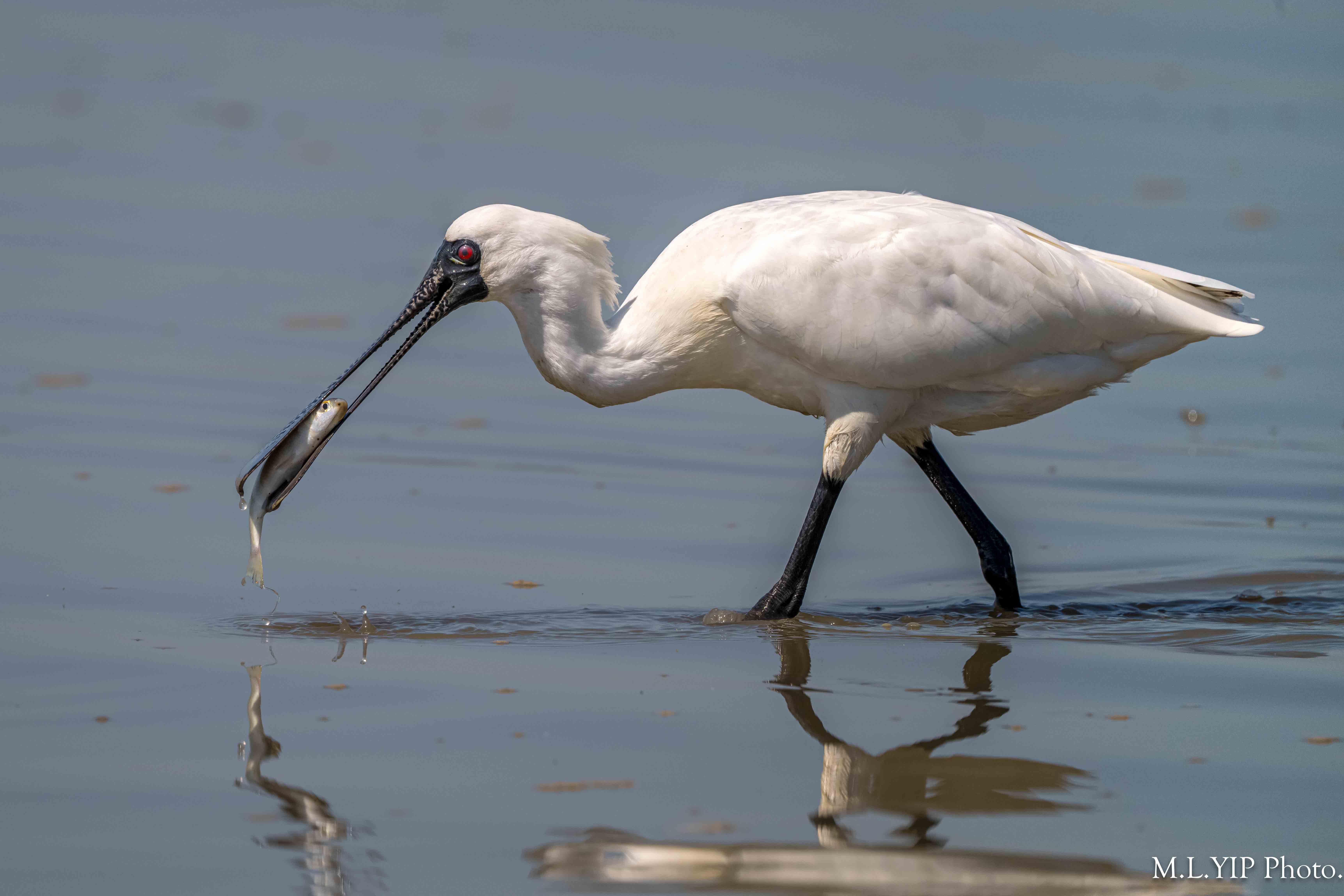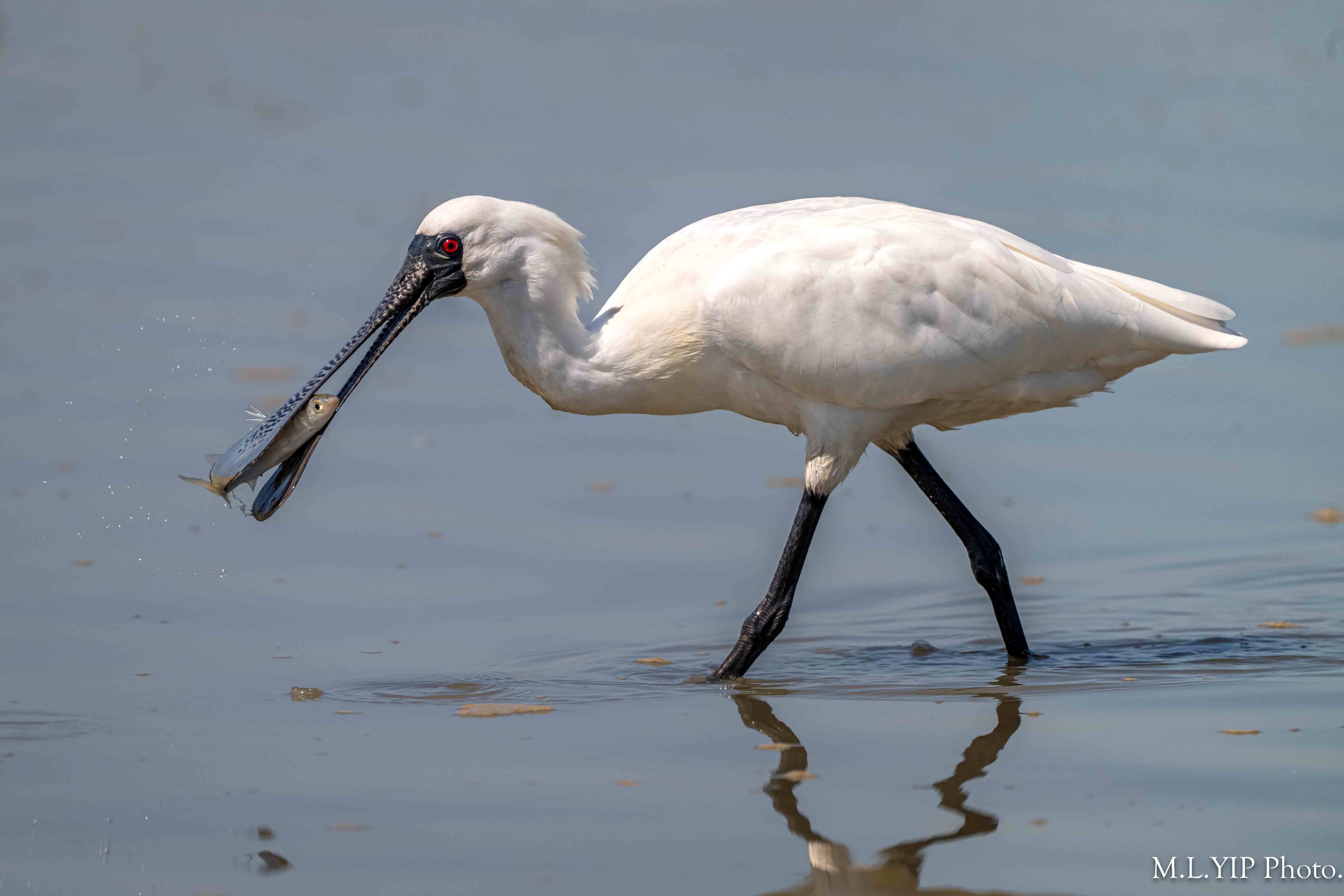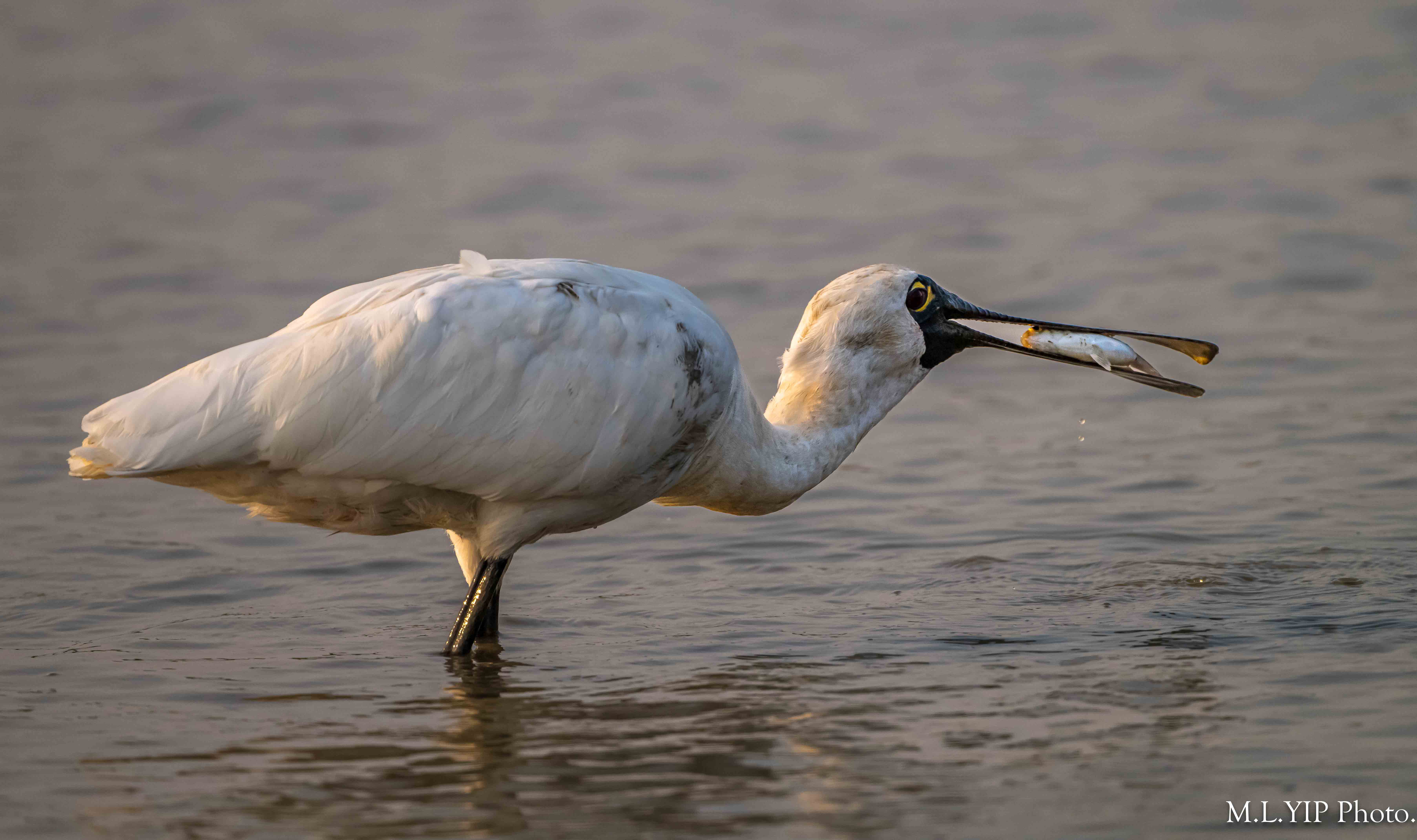 黑臉琵鷺叼魚圖.