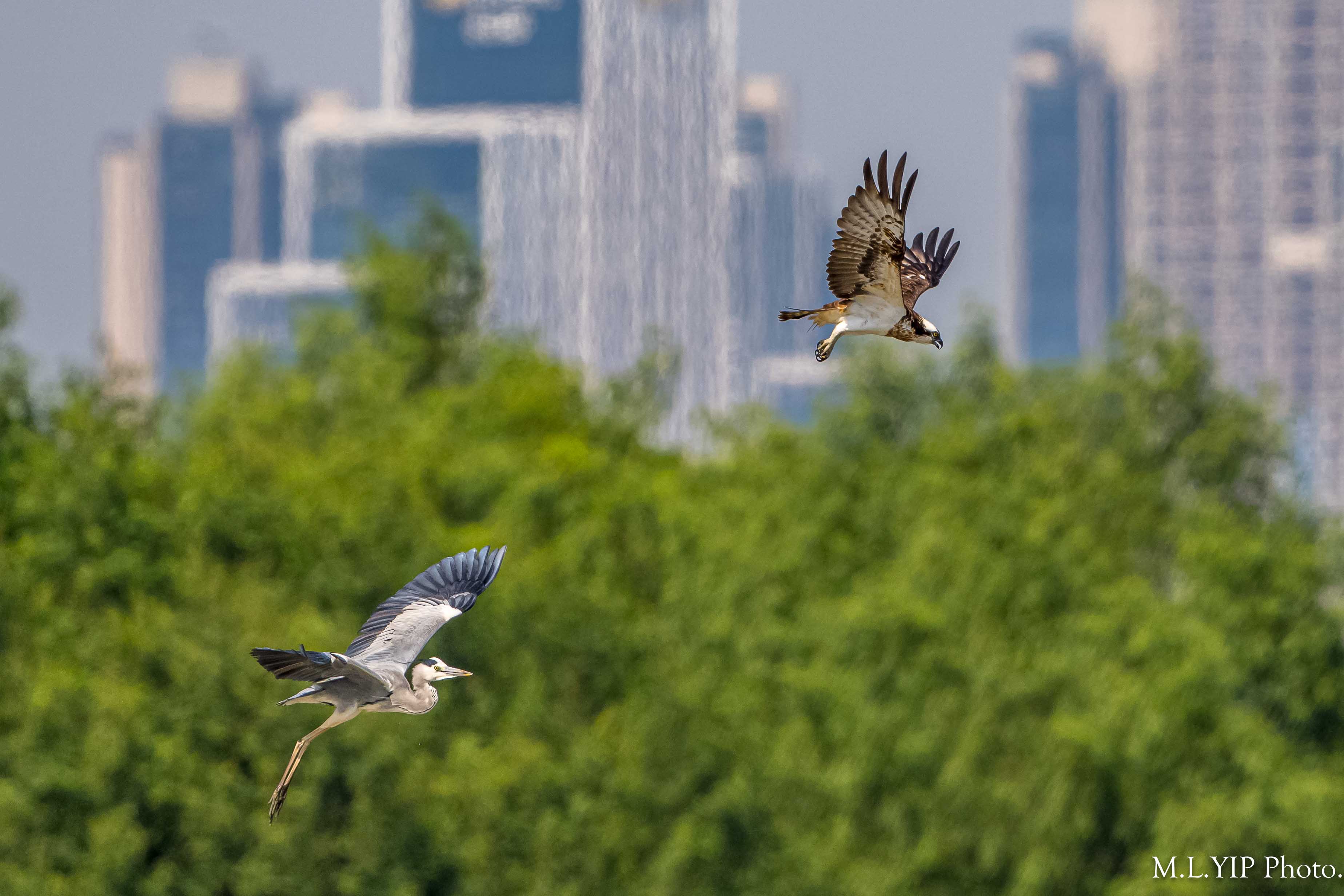 魚鷹在水面滑翔不一會,就馬上被蒼鷺驅趕.