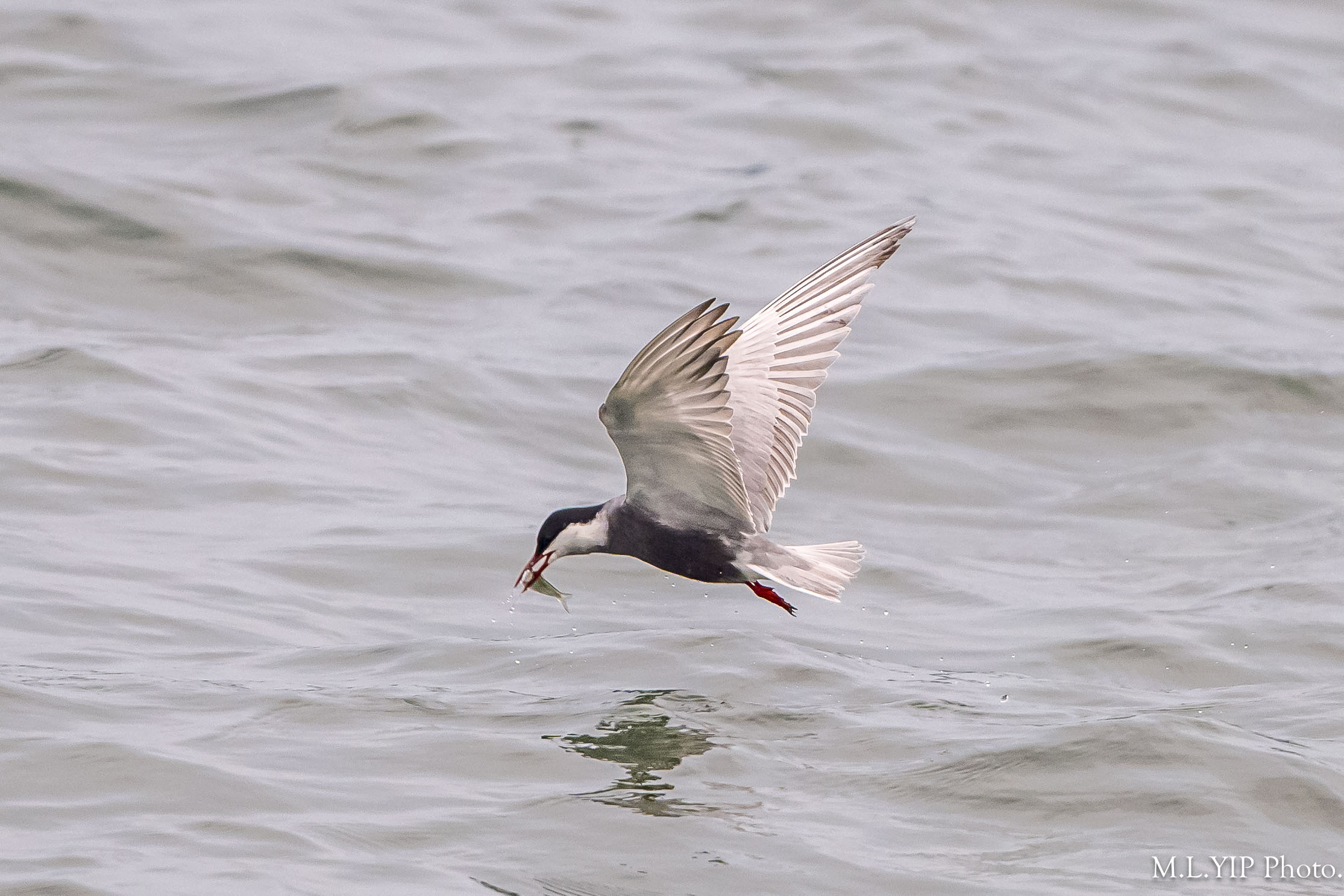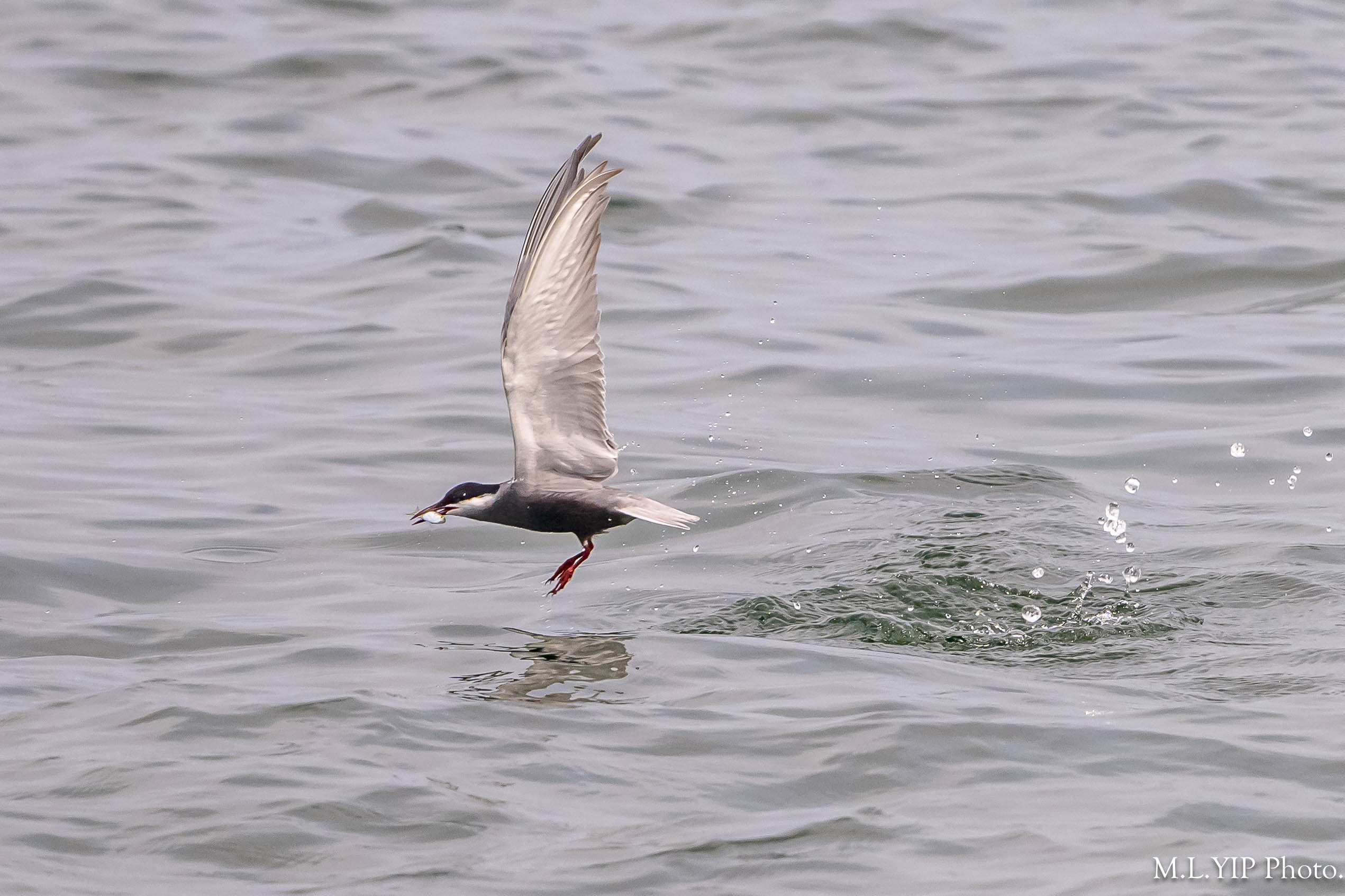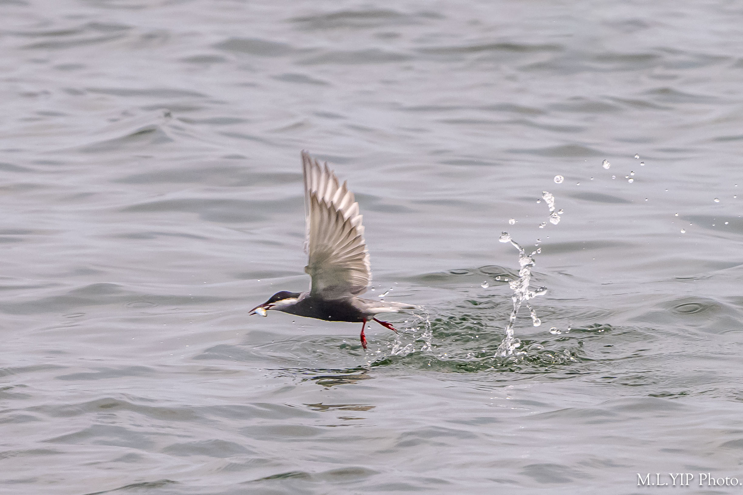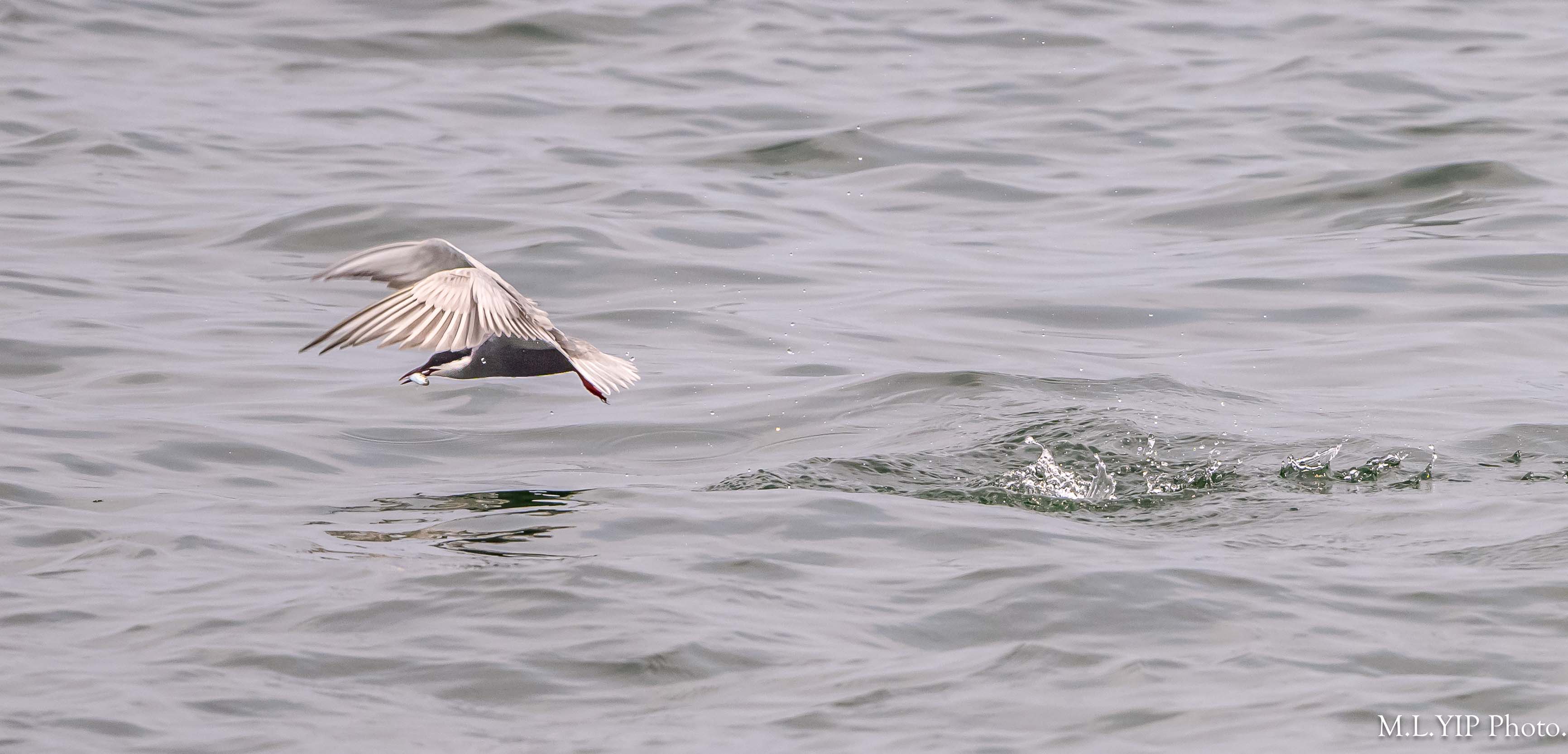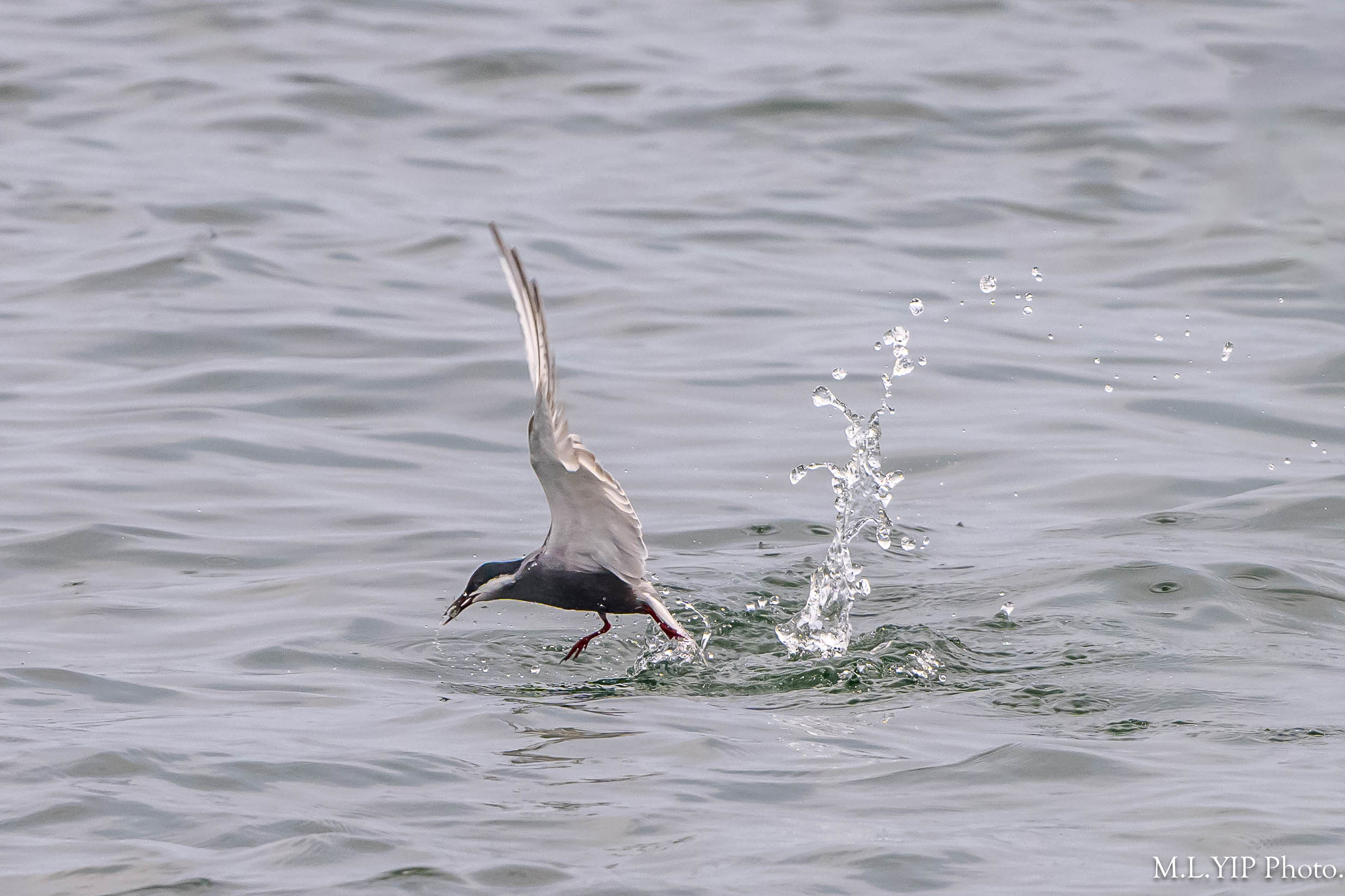 鬚浮鷗施展蜻蜓點水,真係水花都冇乜,可惜距離遠,天氣陰霾,仲以為我影緊黑白相.