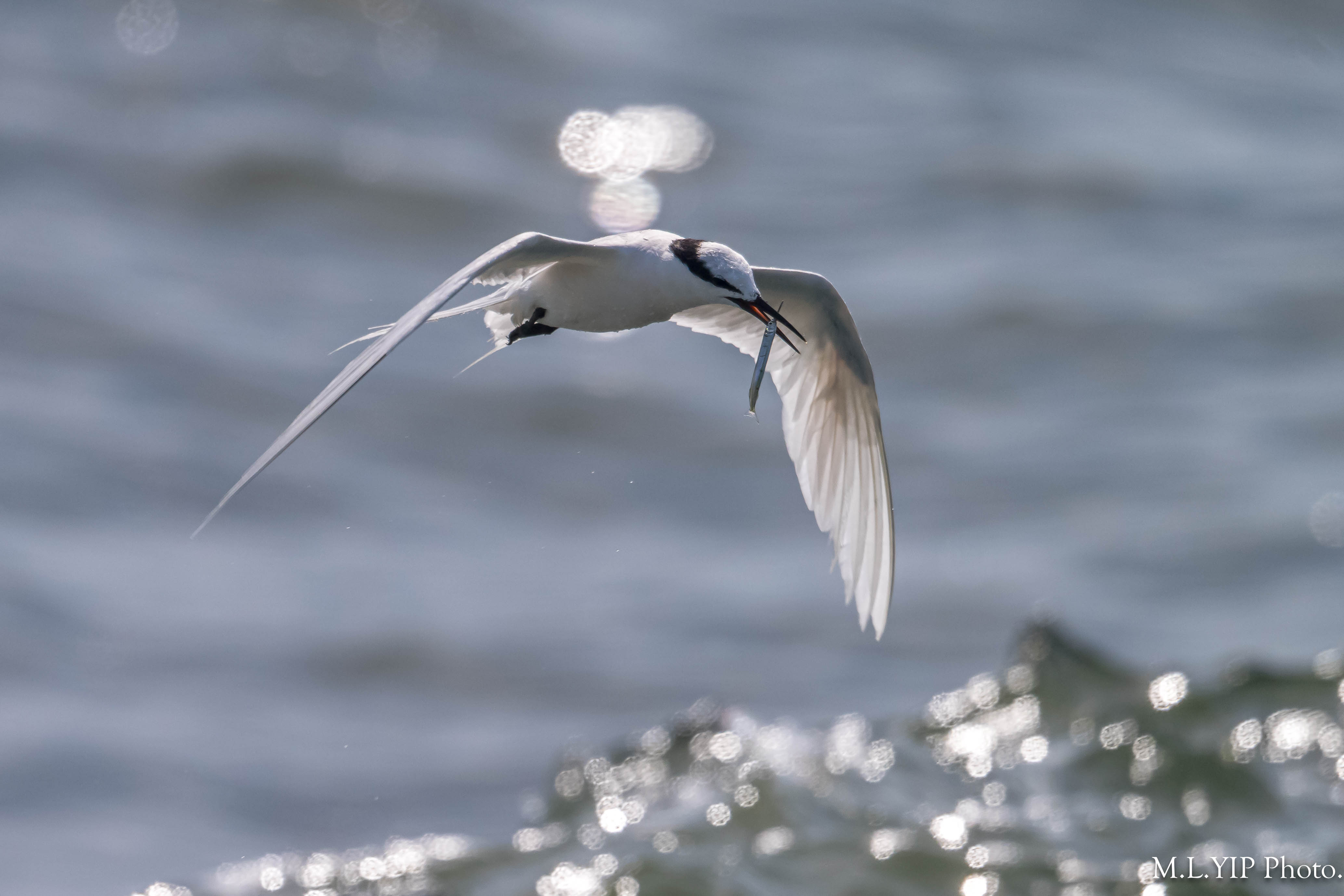 黑枕燕鷗叼魚圖.