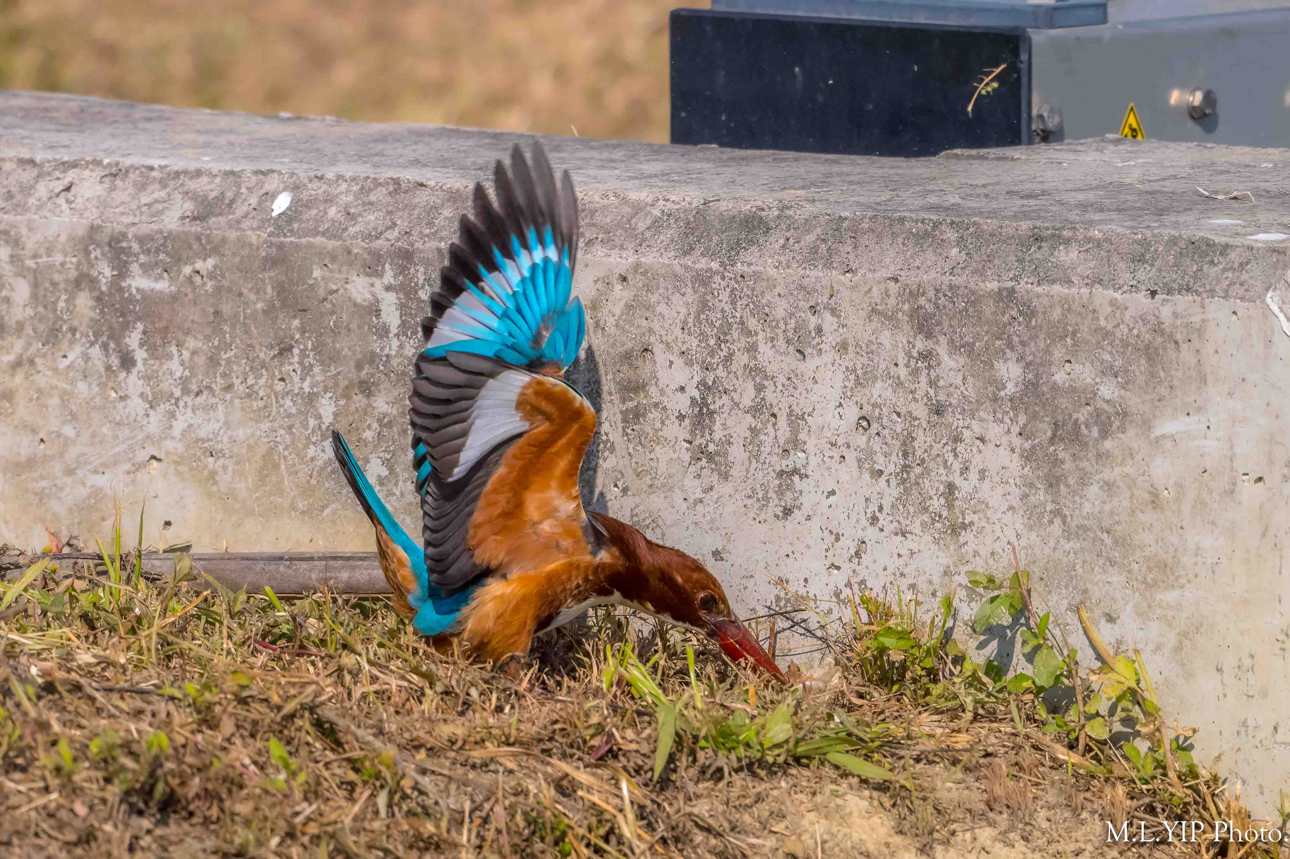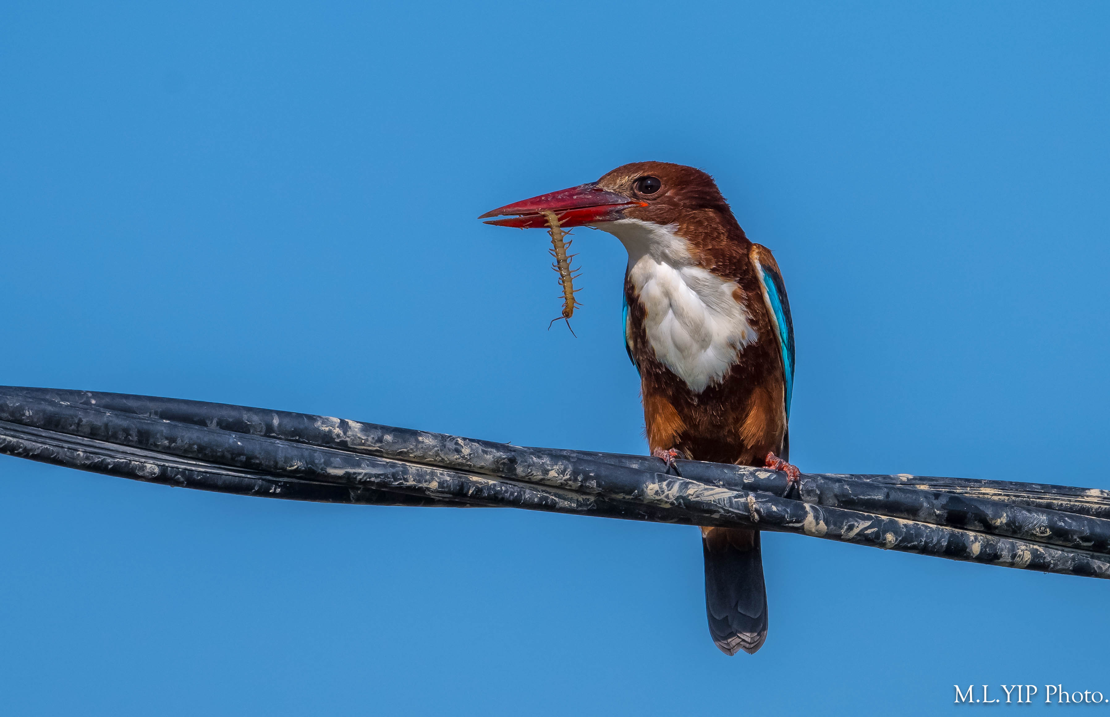 在大約二十分鐘左右,見到這隻白胸翡翠,先後吃掉四條蜈蚣.