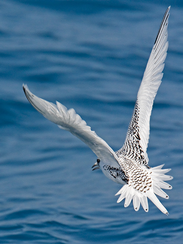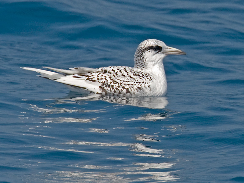 This bird was thickset in my view, resembling a booby when it first landed on the sea at great distance, then, after I'd called it as tropicbird, making me think I'd lost it and picked up an egret so white-winged was it.