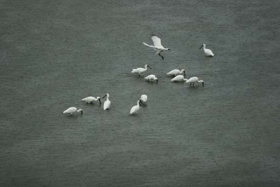本人發現元朗「加州花園」與「和生圍」間的漁塘出現了11隻黑臉琵鷺, 牠們就好像一隊兵般, 在水中排排橫掃進食, 非常可愛, 有時間就來睇吧。