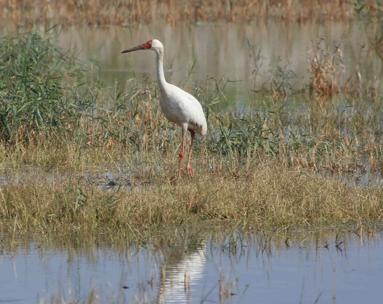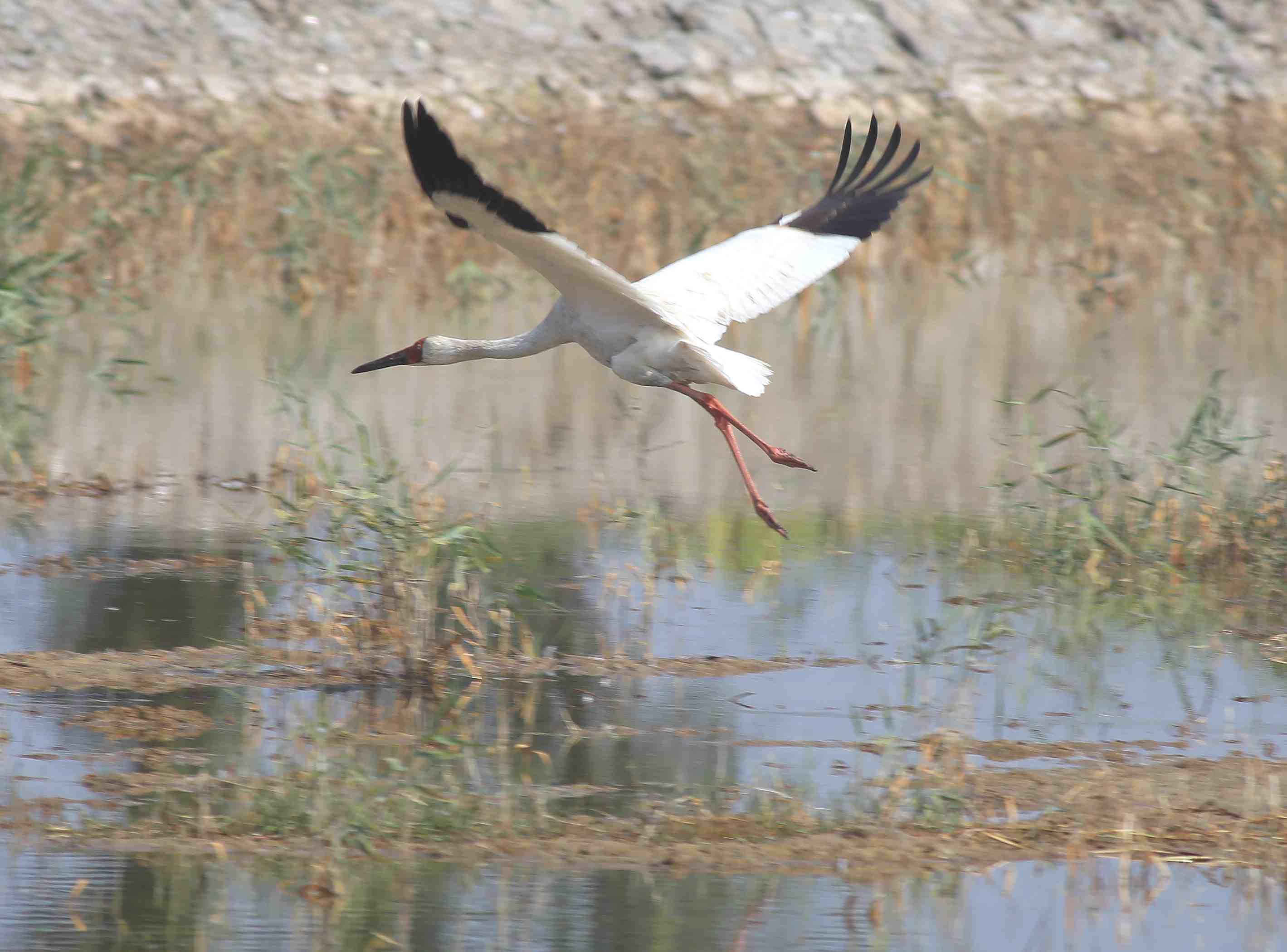 So lucky to meet the Siberian crane in MPNR pond #21-23 in Dec 13 morning. It's been there for over 10 days. Just as Matthew Kwan mentioned in his latest blog on its behavior: the crane kept on feeding itself throughout the morning until it suddenly flew away around noon time.