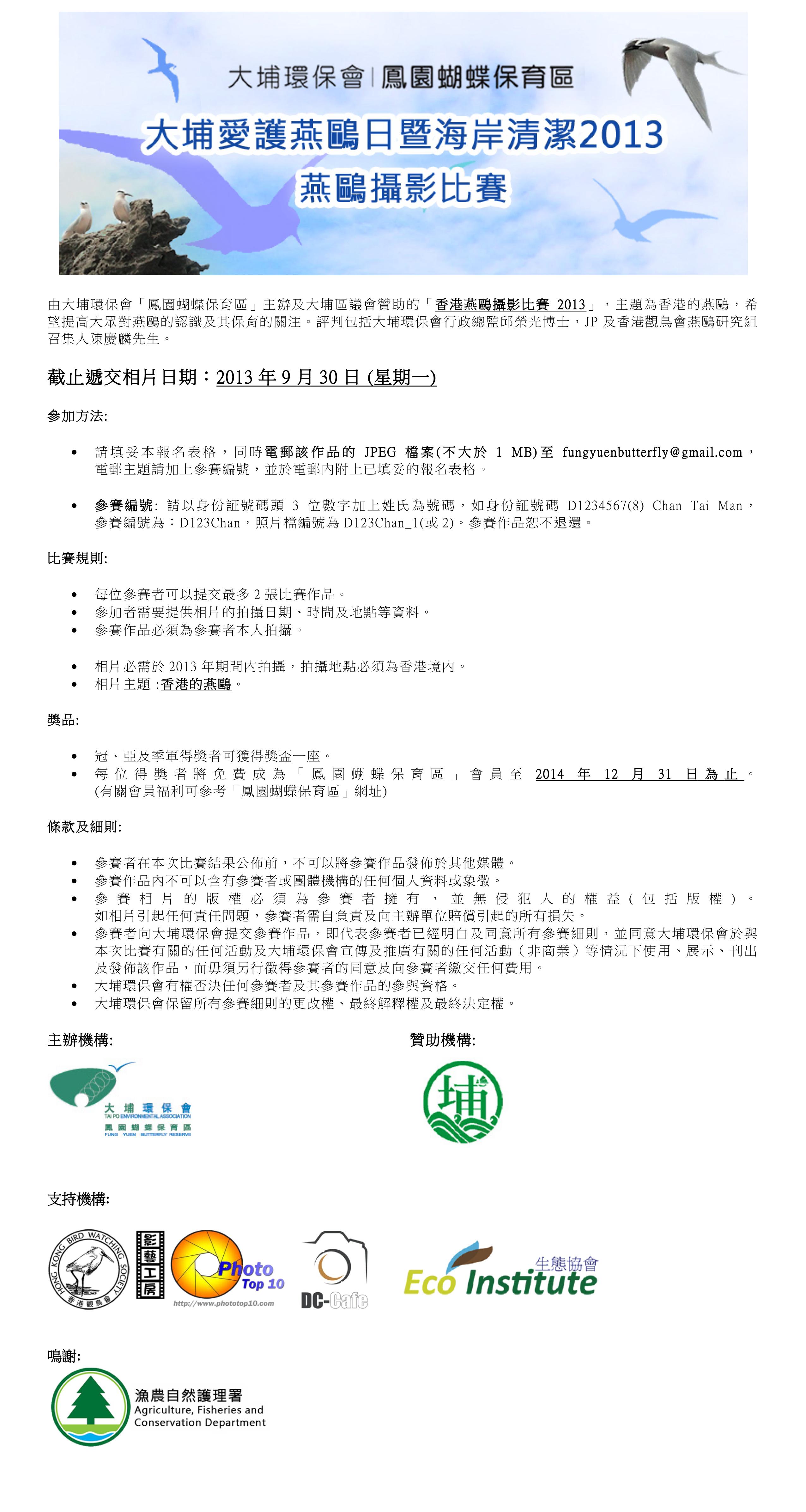 大埔環保會主辦-香港燕鷗攝影比賽 2013