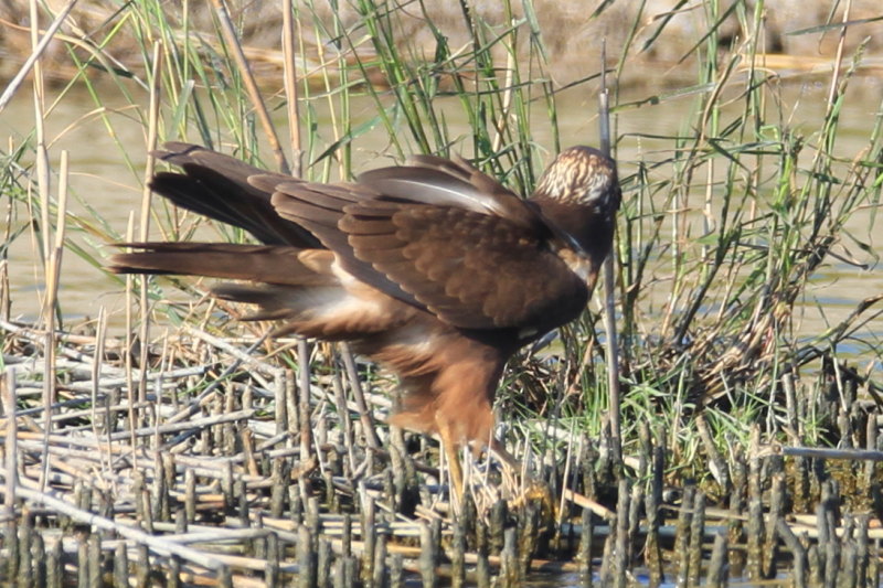 This bird to me is a juvenil Marsh Harrier showing some interesting features, especially on the head pattern...