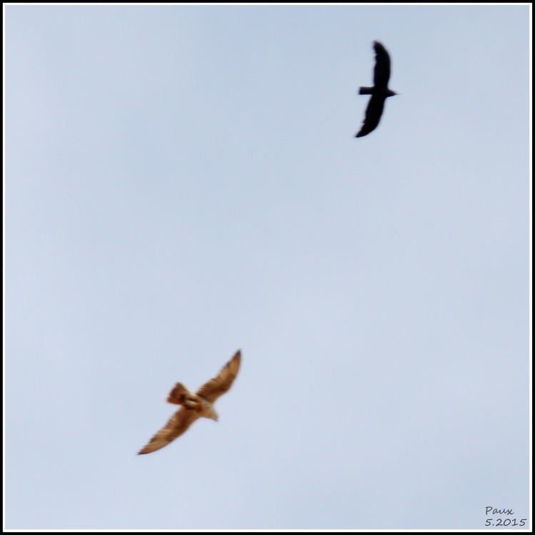 Saker Falcon 獵隼 - it flew over the site of Red-billed Choughs and was immediately intercepted by them !