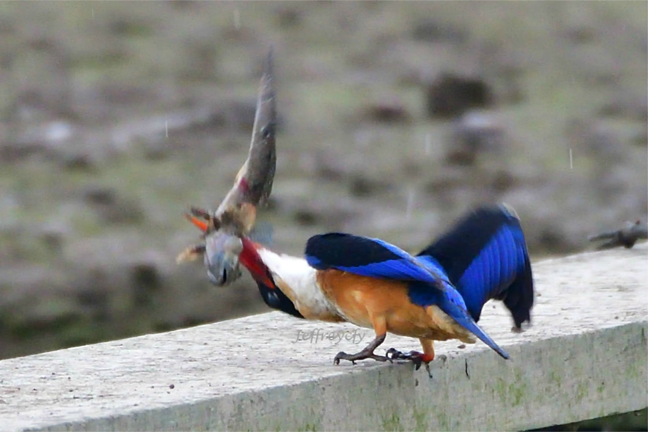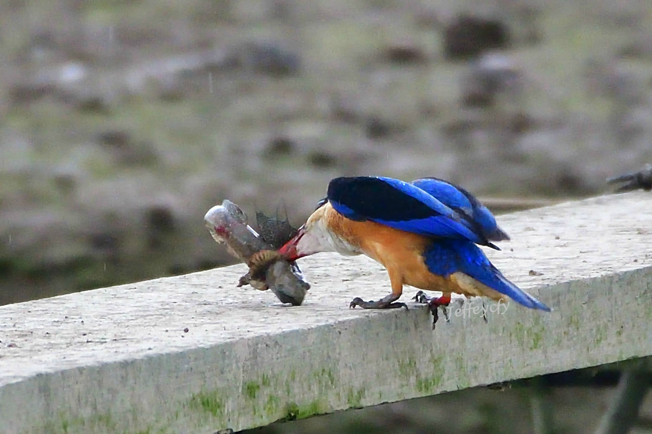 Black-capped Kingfisher (Killing the prey before eating)
